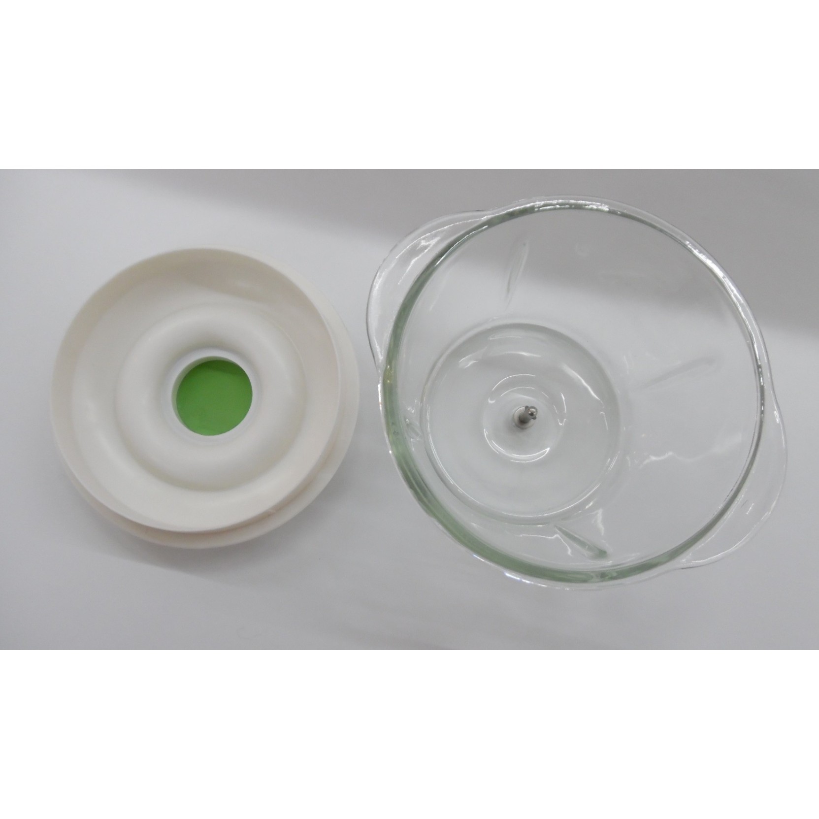 iL CONTENITORE IN VETRO VIENE FORNITO CON COPERCHIO PER RIPORRE IN FRIGO GLI ALIMENTI bianco/verde