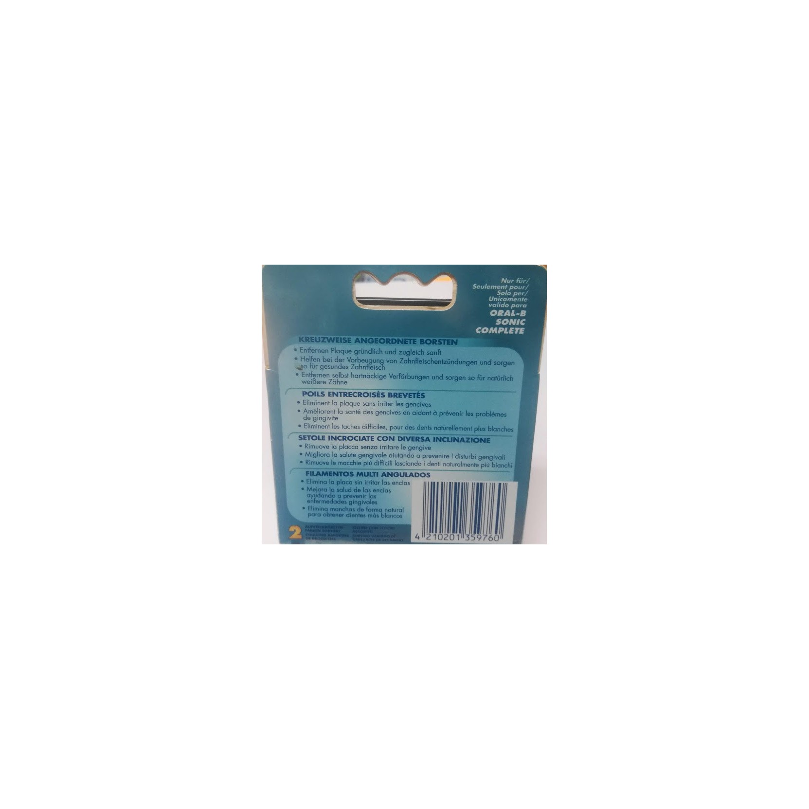 Ricambio spazzolini per ORALB SONIC COMPLETE. Confezione contiene n.2 spazzolini.