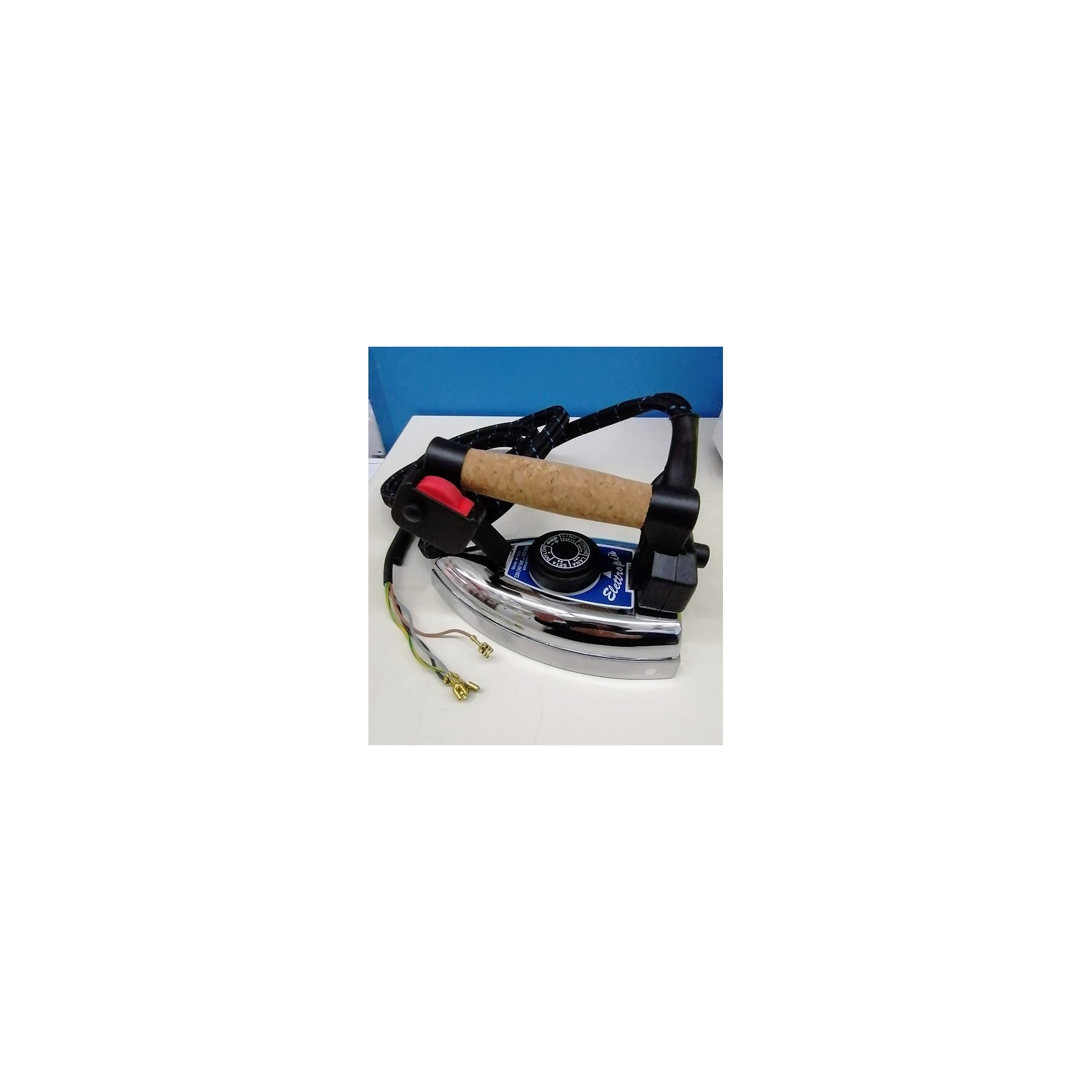 Il ferro da stiro professionale modello Tulipano viene fornito senza innesto cavo a 4 colori da collegare a caldaie professionali Elettropiù-Mb-Michelini-Lelit. Piastra cromata- completo di monotubo vapore/corrente terminali a faston-