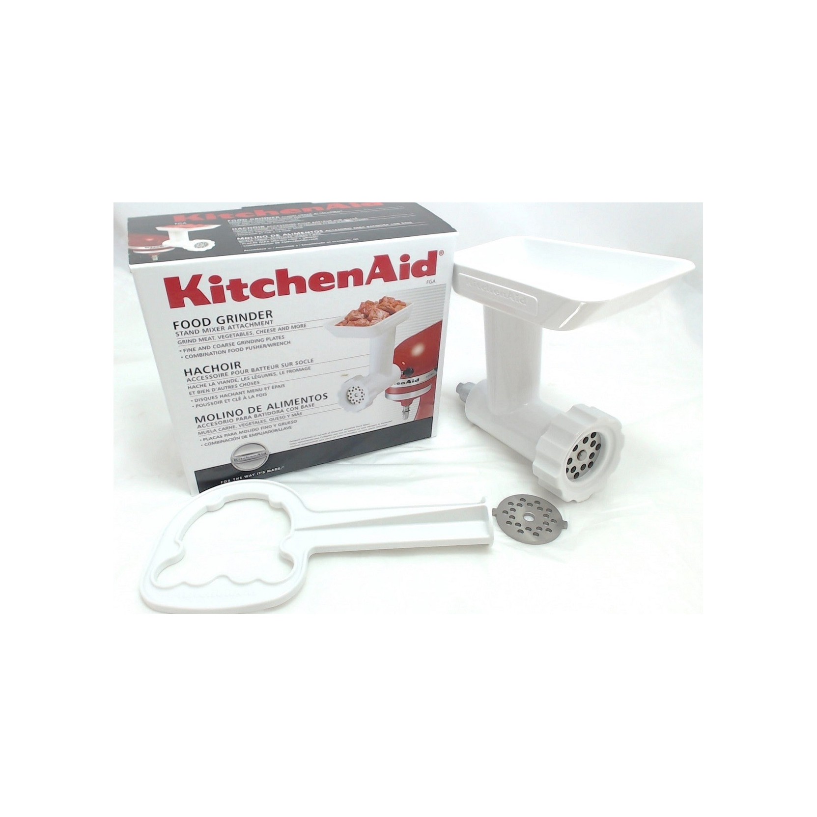 Accessorio tritacarne FOOD GRINDER mod.FGA per impastatrice planetaria KitchenAid ideale per macinare carne cruda, utile anche per tritare formaggi pasta dura e sbriciolare il pane.