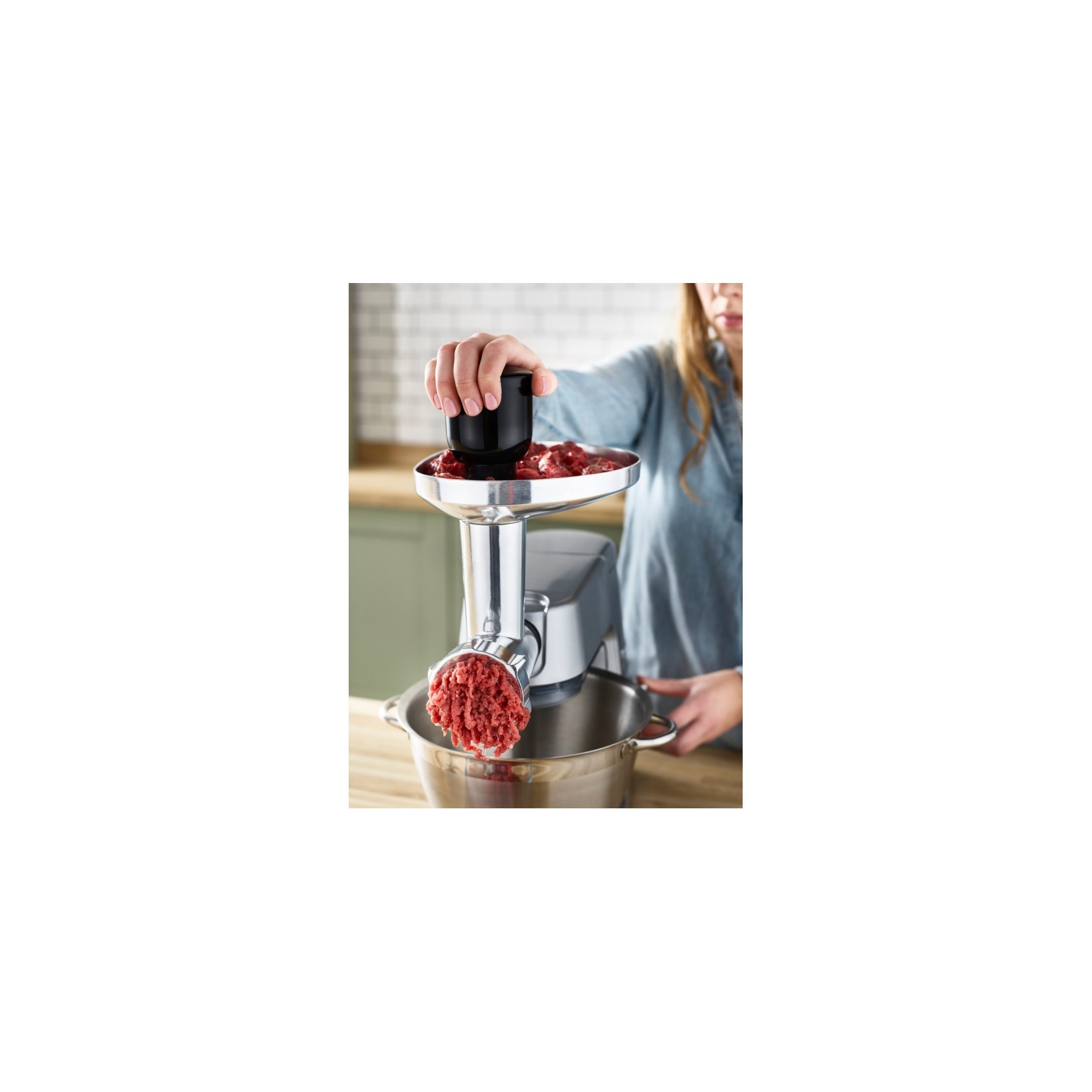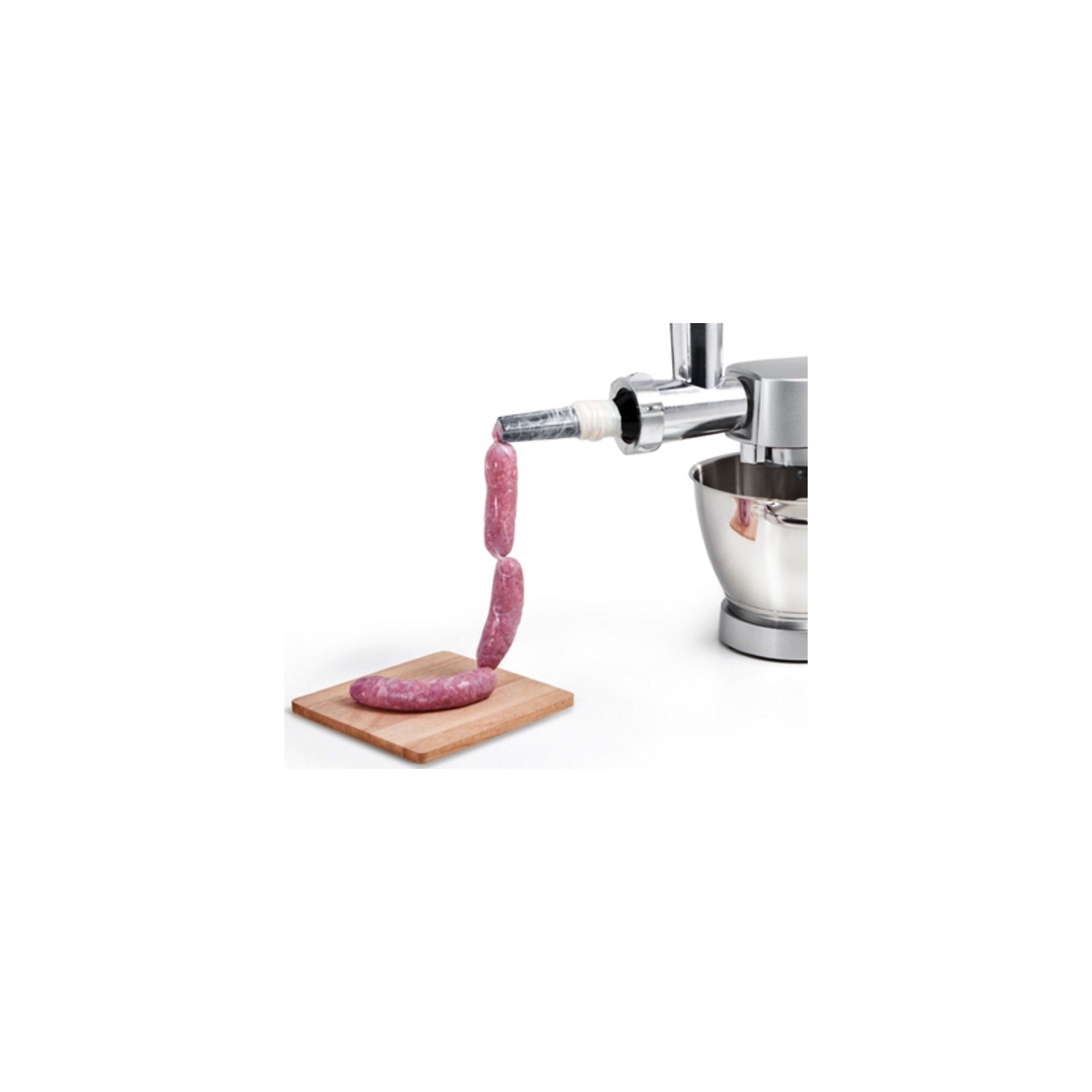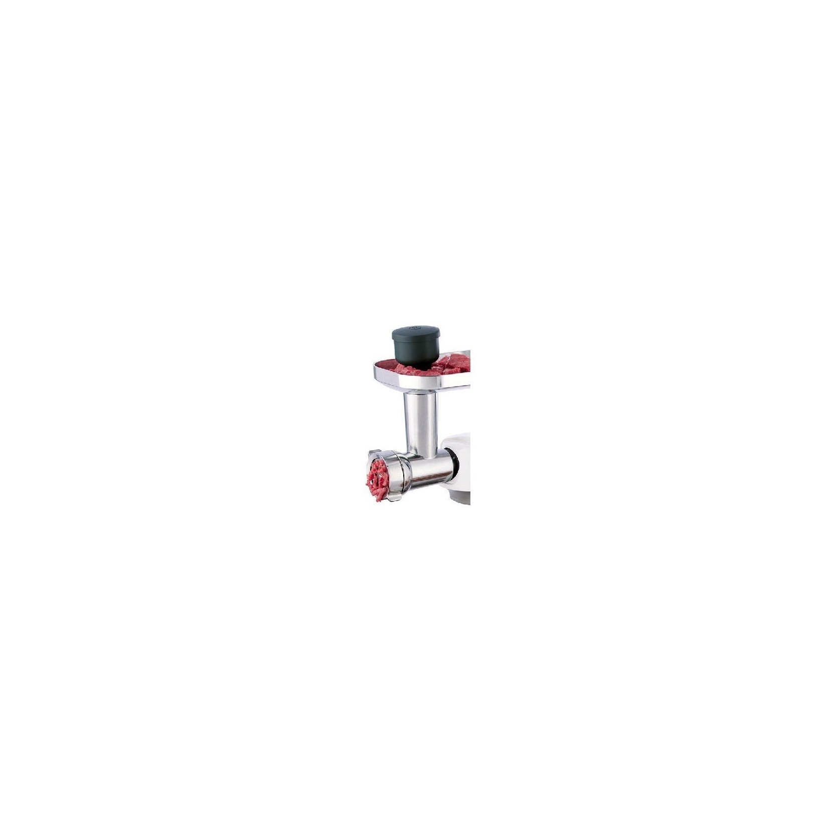 Accessorio Tritacarne per impastatrice Kenwood. L'accessorio kax950A sostituisce il modello AT950 il Tritacarne si monta a tutti i modelli Kenwood Chef e Major completo di 3 trafile in Alluminio per diverse macinazioni. Il tritacarne Kenwood è l'accesorio che completa la tua cucina, per preparare ragù polpette ma anche per fare in casa insaccati, viene fornito con accessorio insaccatore.