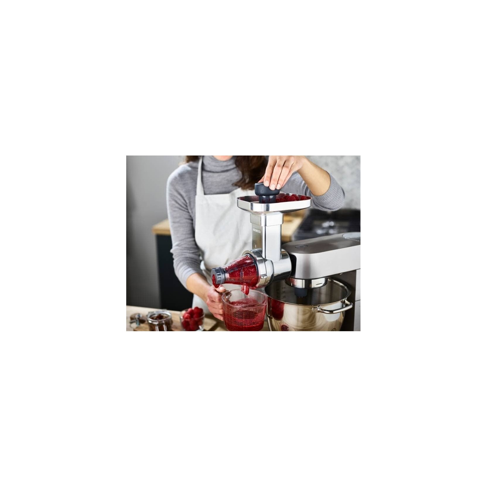 Prepara salse, succhi di frutta, marmellate e gelatine con la pressa per frutta KAX644ME KENWOOD da applicare alla tua planetaria Kenwood Major o Chef