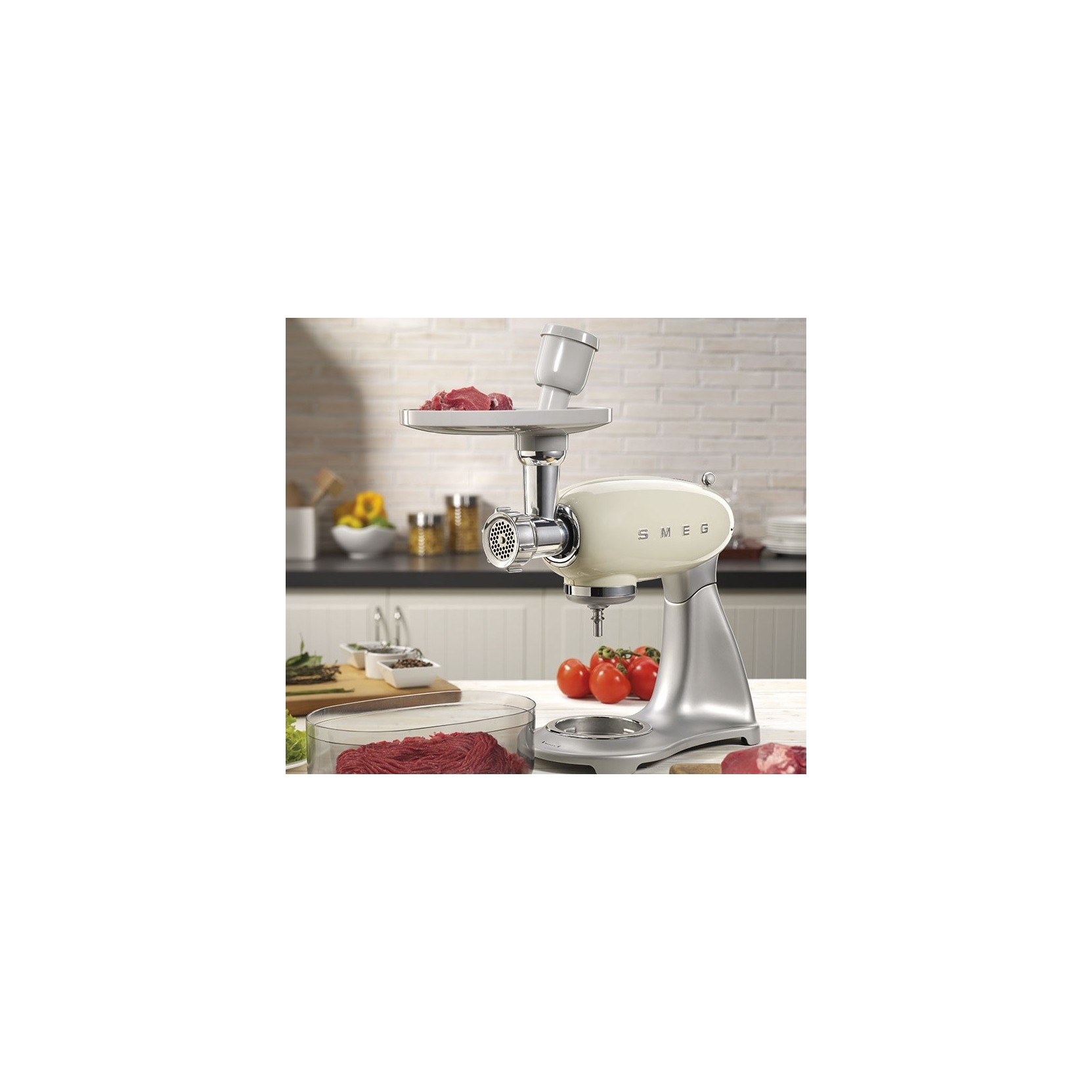 Accessorio tritacarne da applicare alle impastatrici planetarie SMEG. L'accessorio tritacarne si monta nel parte frontale del motore, è completo di trafile e insaccatore.