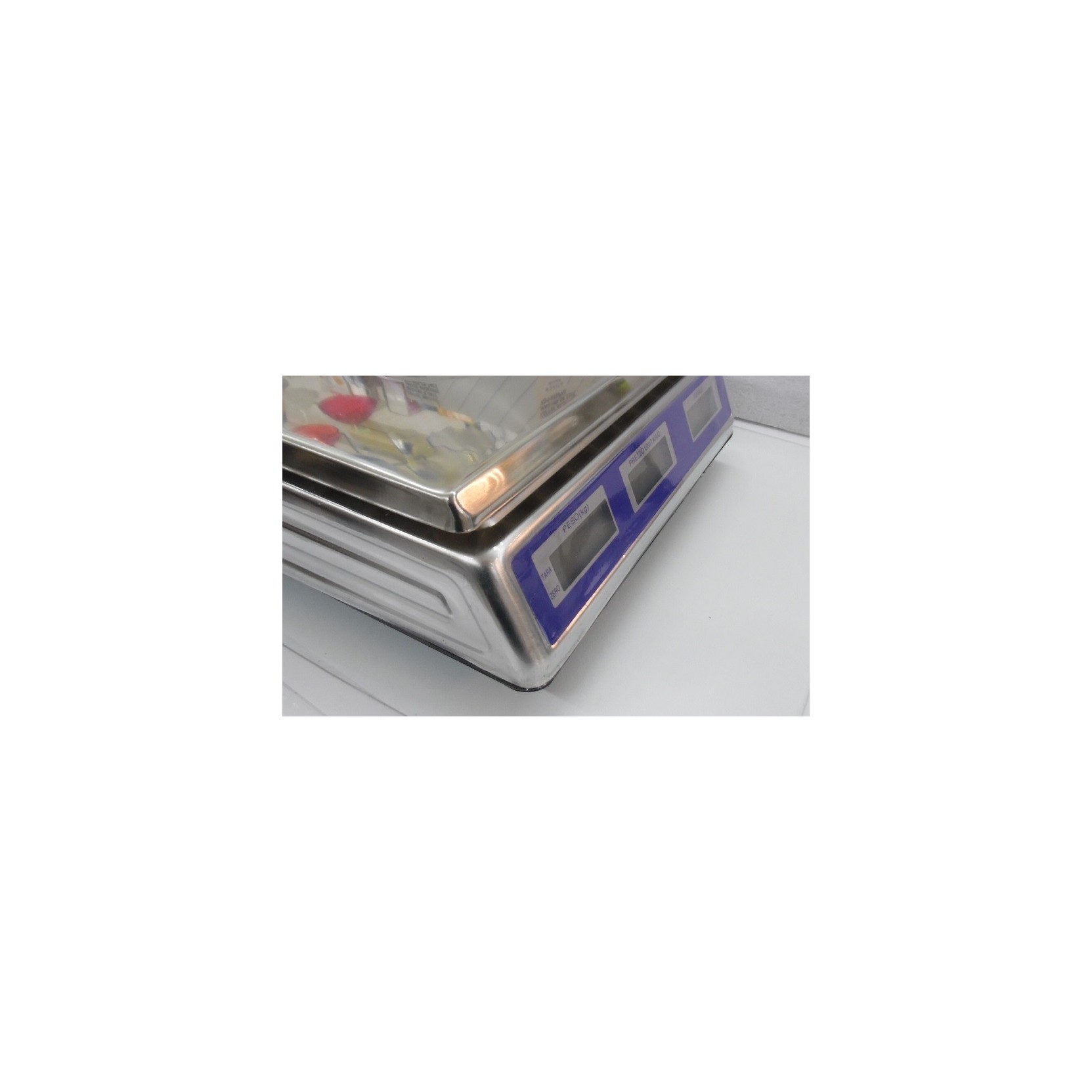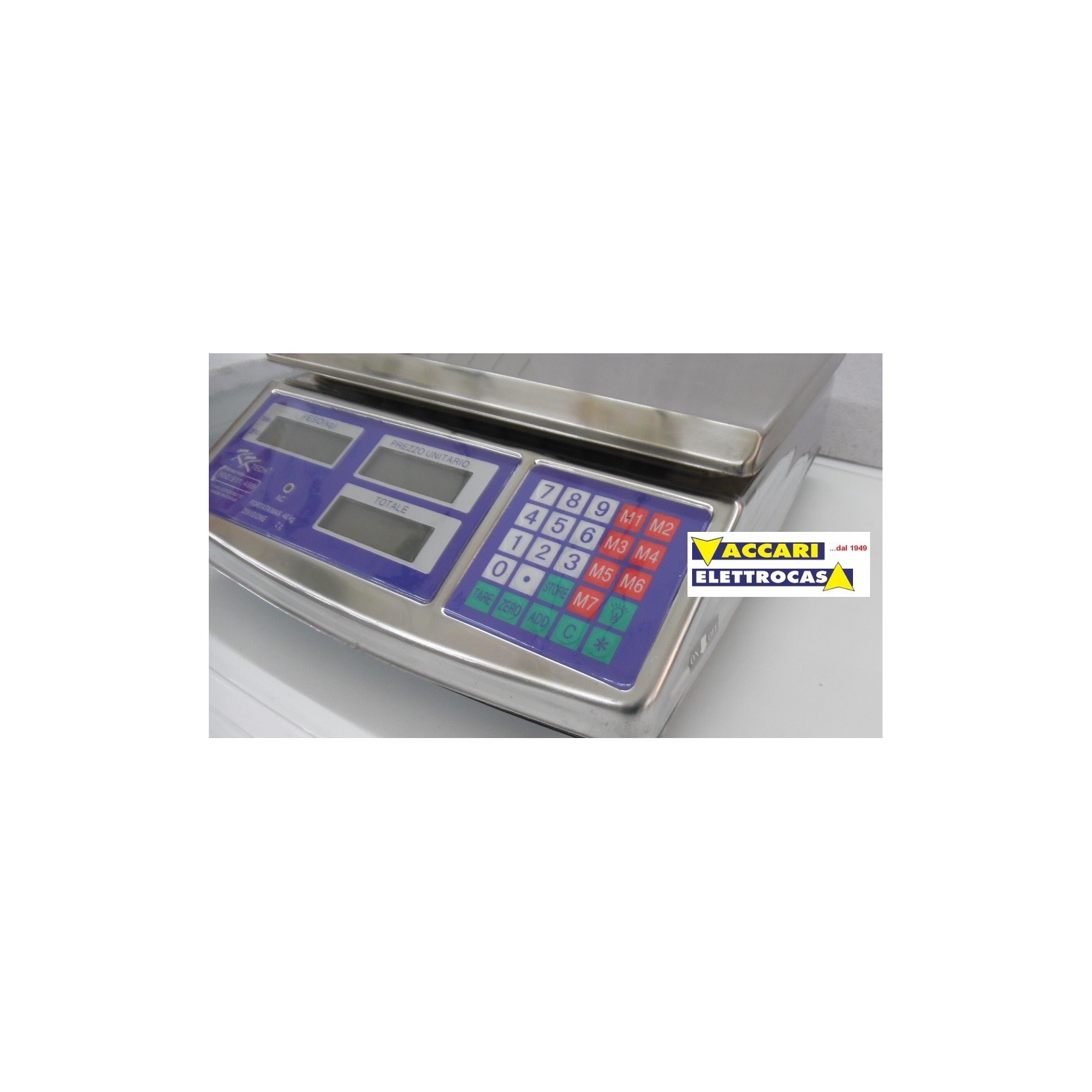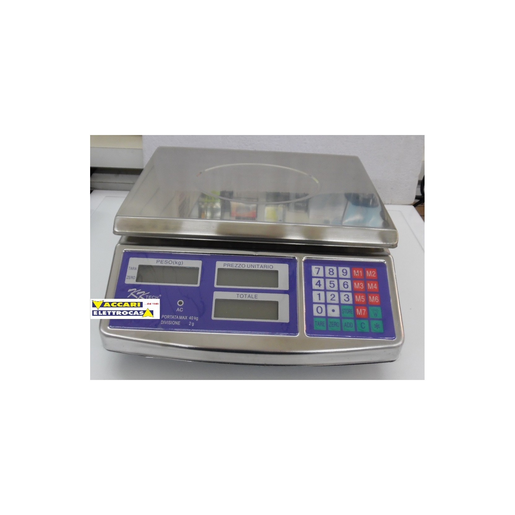 Bilancia digitale elettronica per alimenti e prodotti fino a 40 kg di peso con divisione di 2 gr Uso domestico. Display LCD, operatori, memorie, costruita con cella di carico precisa e accurata, la bilancia si spegne automaticamente in condizioni di non utilizzo per risparmio energetico.Piatto in acciaio inox pesata minima di 2 grammi,Ricaricabile Alimentatore. TUTTA INOX display anche dietro.