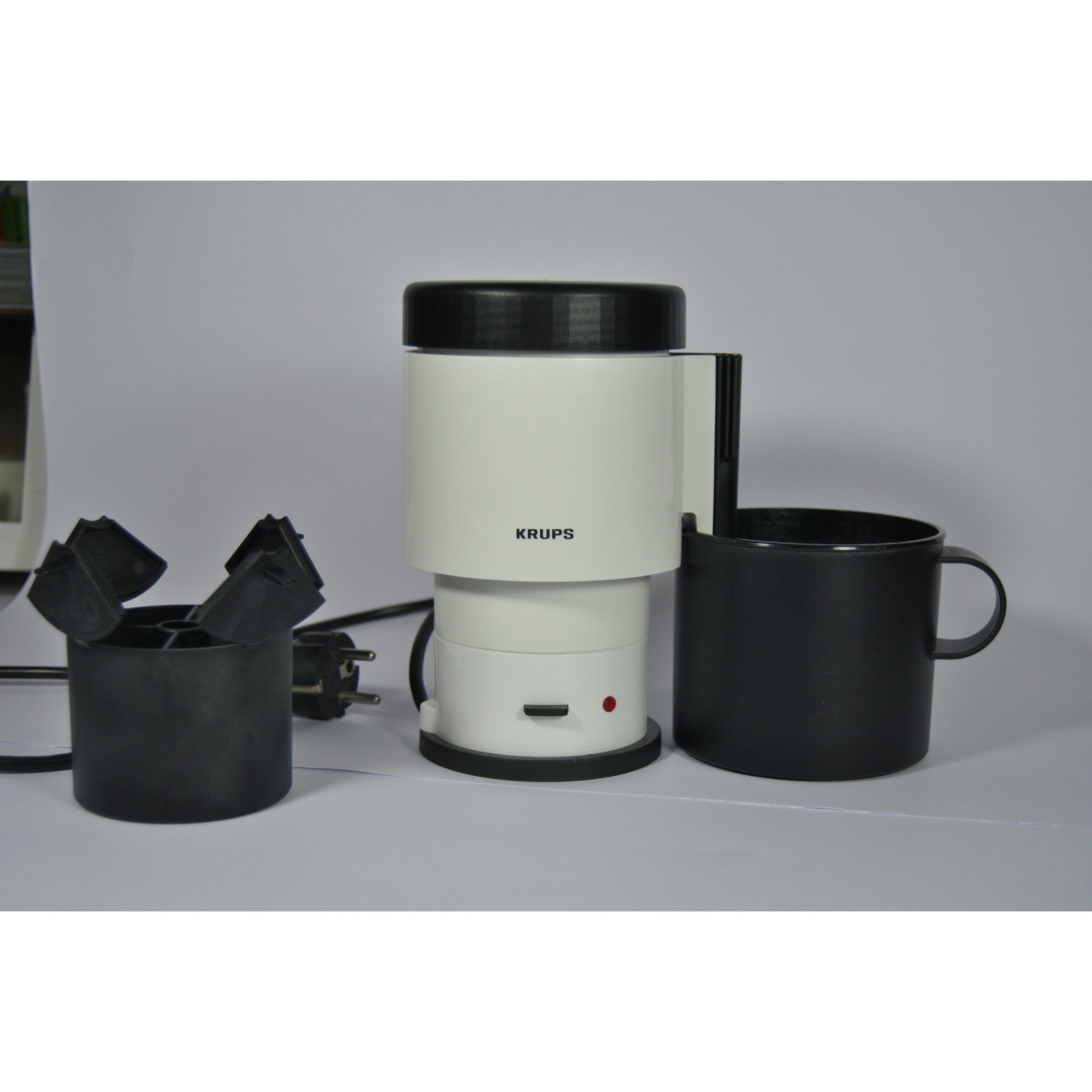 krups 147 è la Caffettiera elettrica da viaggio ideale per preparare un buonissimo caffe' d'orzo, caffè americano, caffè lungo con comoda tazza integrata. Recipiente per 4 tazzine di caffè, zucchero o latte in polvere. Facile da usare. Arresto automatico.
