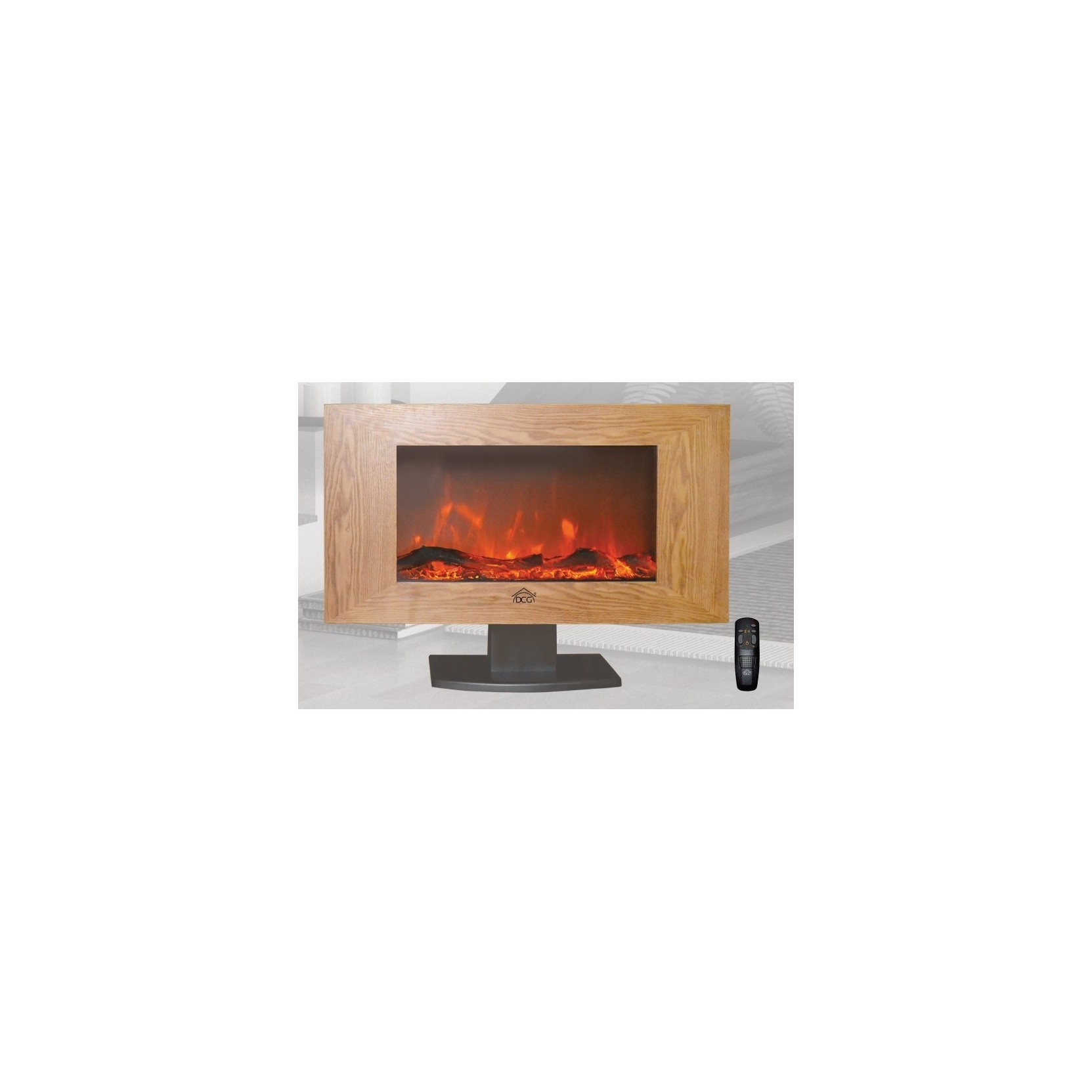 Caminetto elettrico con effetto fiamma con legna con braci ardenti, design elegante con bordo in legno. lo puoi appoggiare o fissare a murro con la staffa in dotazione.