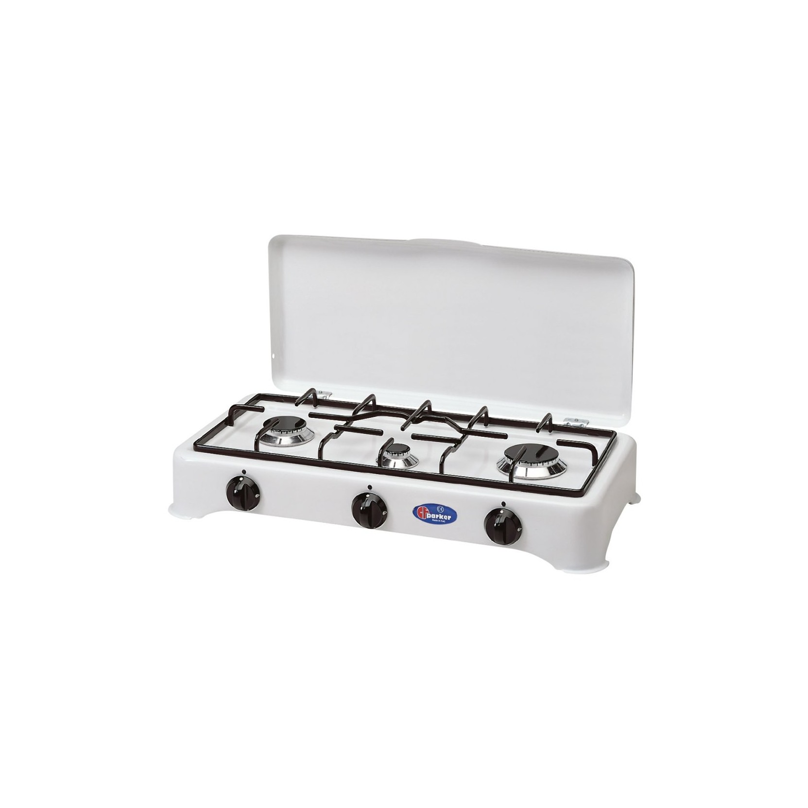 Fornello a gas METANO a 3 fuochi, smaltato bianco con coperchio.