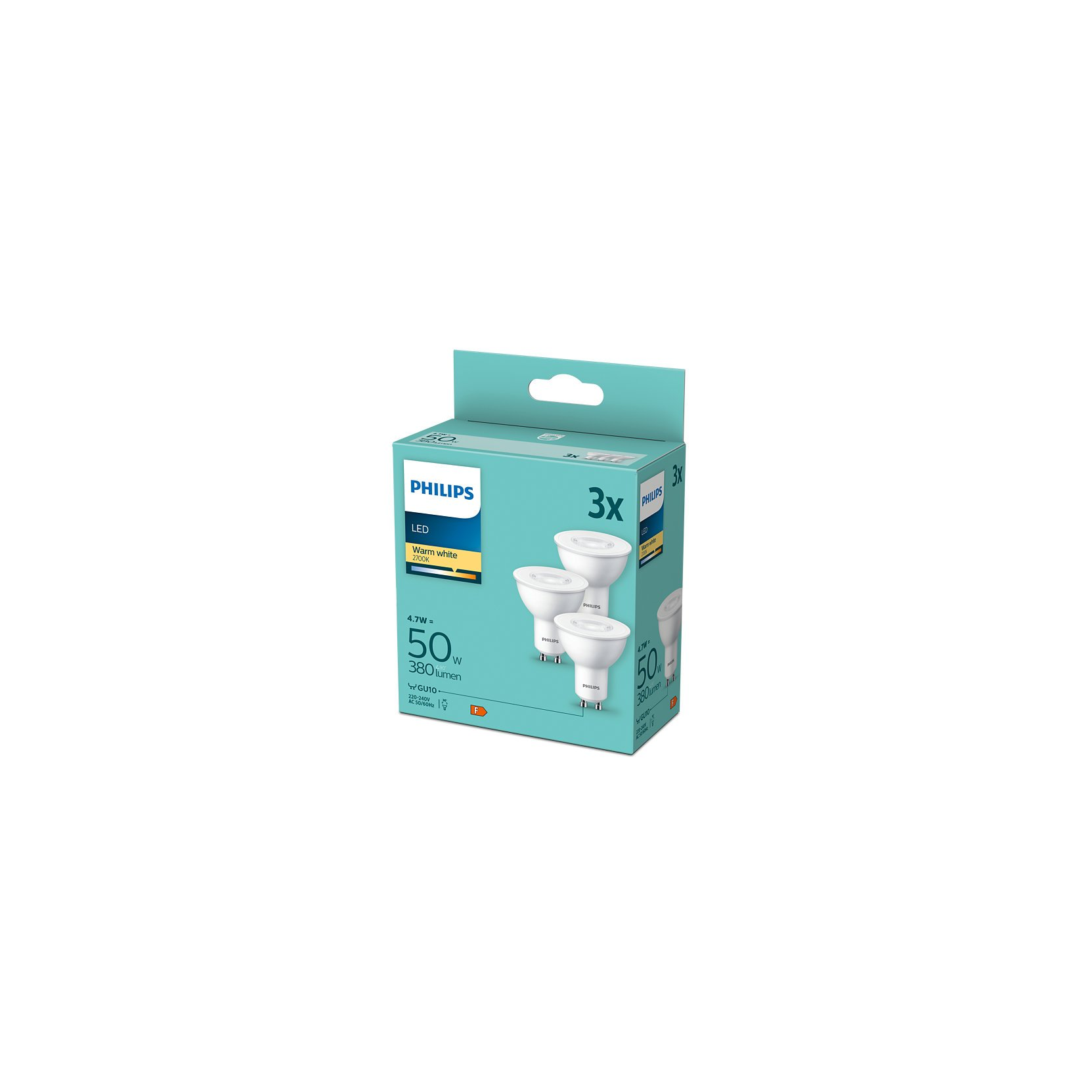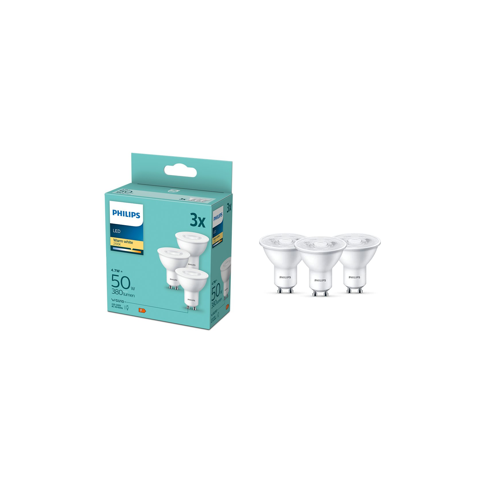 Conf. 3 lampade led attacco GU10 luce calda WARM 2700K- 4,7Watt/50watt