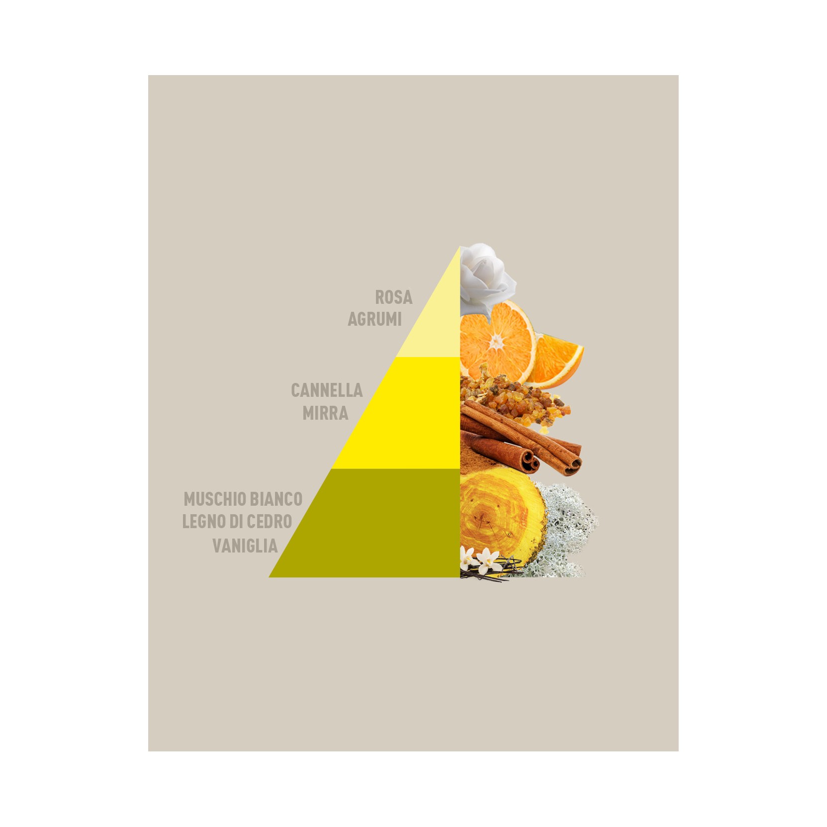 Note di fondo: vaniglia, muschio bianco, legno cedro.