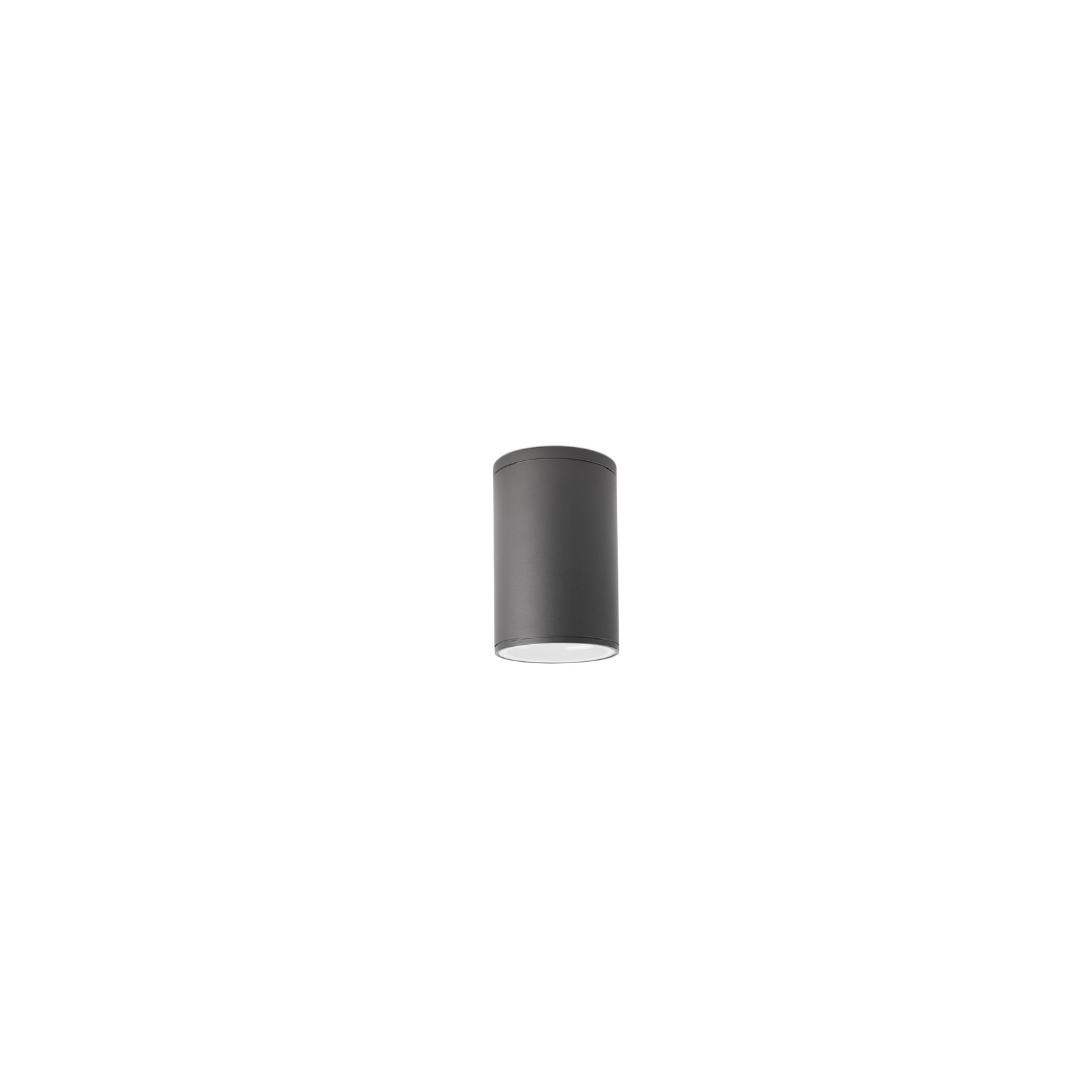 Plafoniera da esterno o interno con moderna forma a cilindro, colore grigio scuro, per terrazzo, giardino, porticato o in ambienti interni come bagni, cucina ect. Fabbricata in alluminio pressofuso e diffusore di vetro temperato.La plafoniera ha attacco lampada E27 e può utilizzare lampade a LED, Basso consumo, tradizionali, halogene...