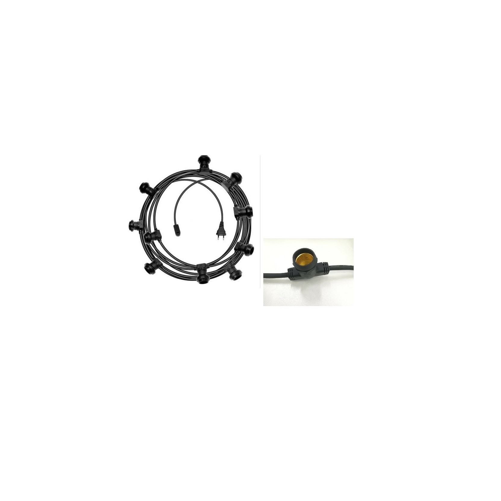 Catenaria di luci per giardino, questo filo di 10 lampadine attacco E27 (grande) adatto ad uso esterno per decorare feste, dehor, ristoranti.Crea un ambiente unico e dal gusto retrò, oppure multicolor se preferite utilizzare lampadine colorate. Lunghezza filo 10 mt con spina shucko, portalampada E27. adatto per lampadine tradisionali e led.