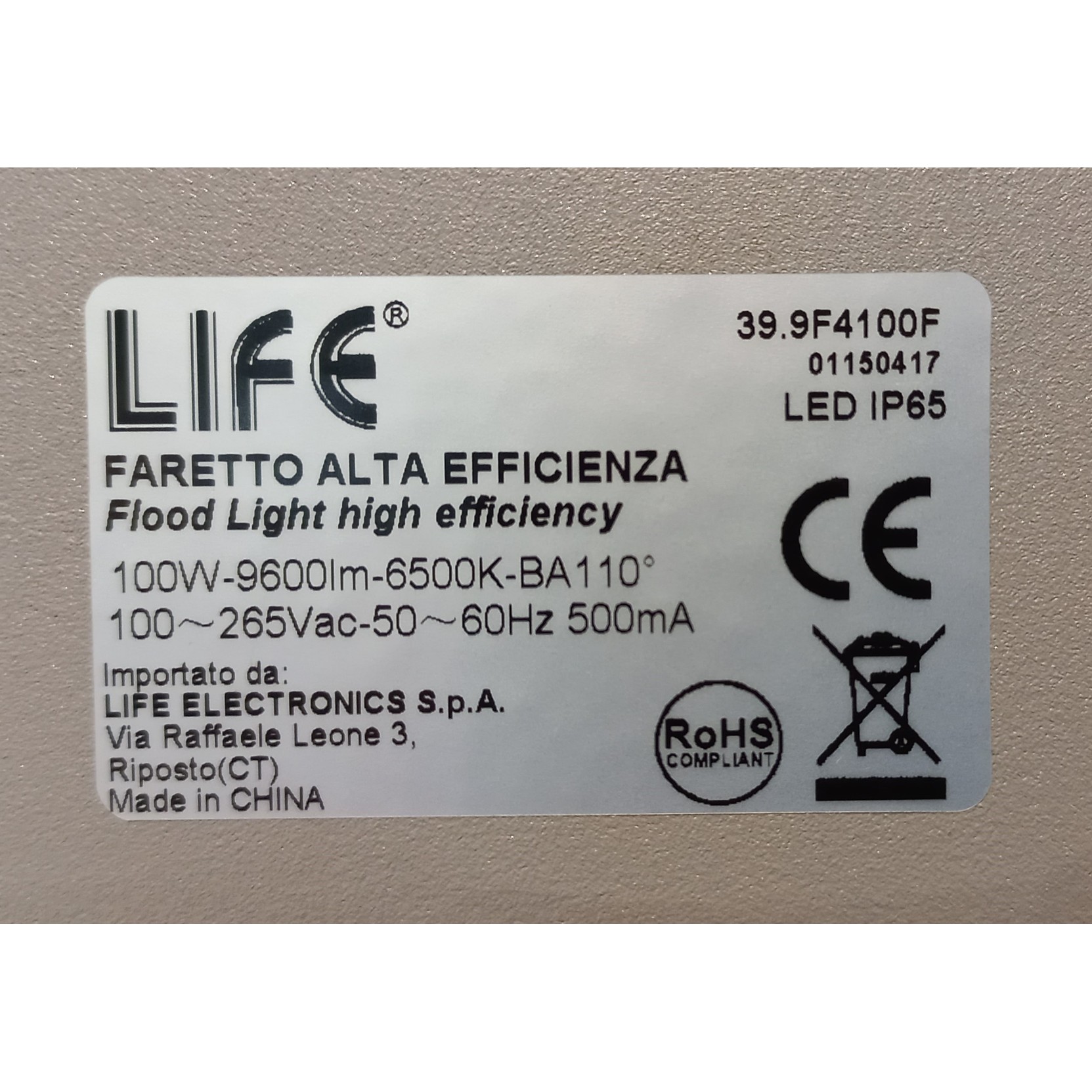 faro ad alta efficienza luminosa LED 100w - luce fredda 6500k - 9600lm - IP65 - 180/265Volt - NON dimmerabile