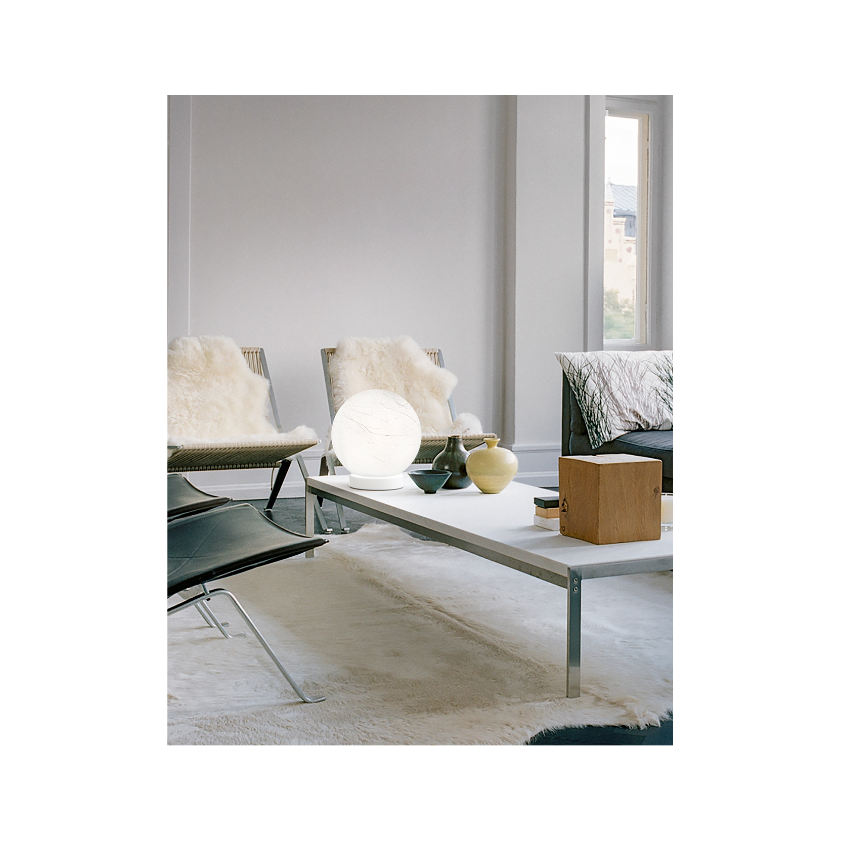 Lampada da tavolo o comodino a forma di sfera, total white, diametro 20cm Carta TL1 d20 di Ideallux è una elegante lampada da scrivania o comodino dalla linea minimalista in materiale policarbonato con effetto carta.