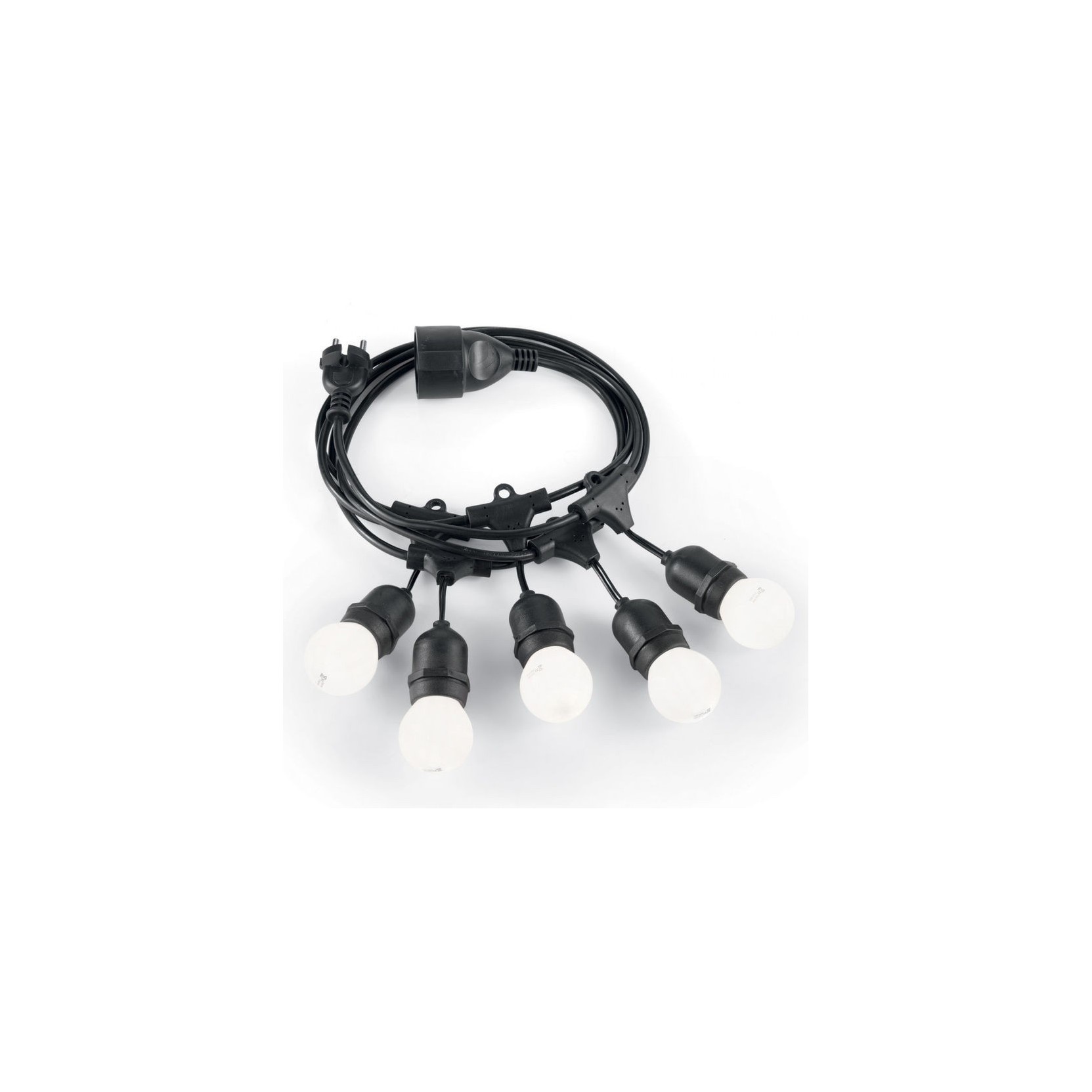 Cavo NERO con 5 portalampade e occhielli di ancoraggio in materiale plastico. Con spina per esterni IDEAL LUX