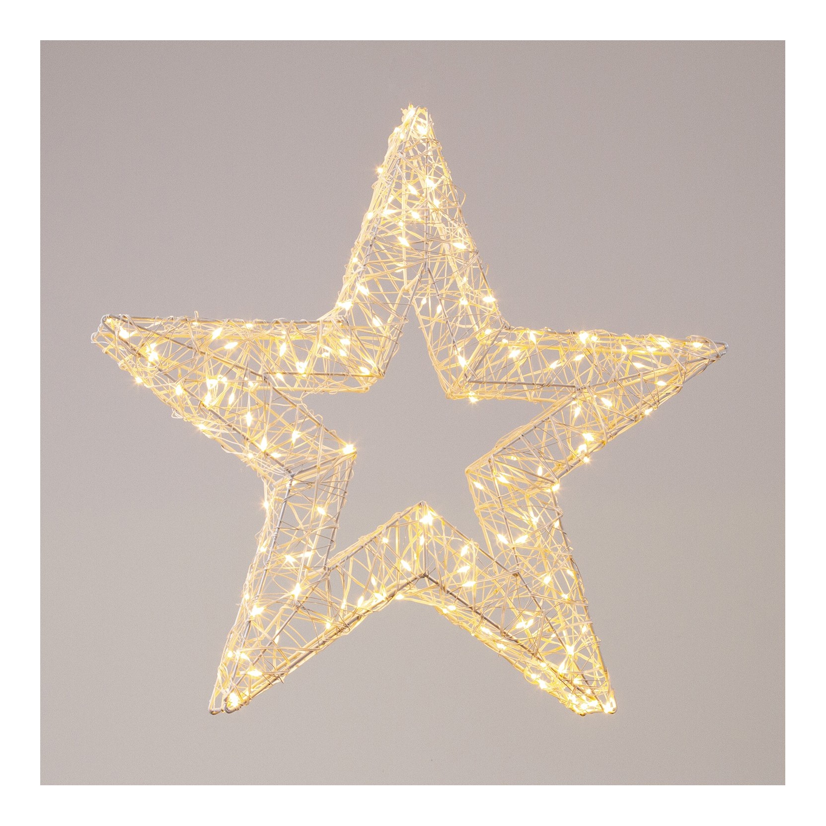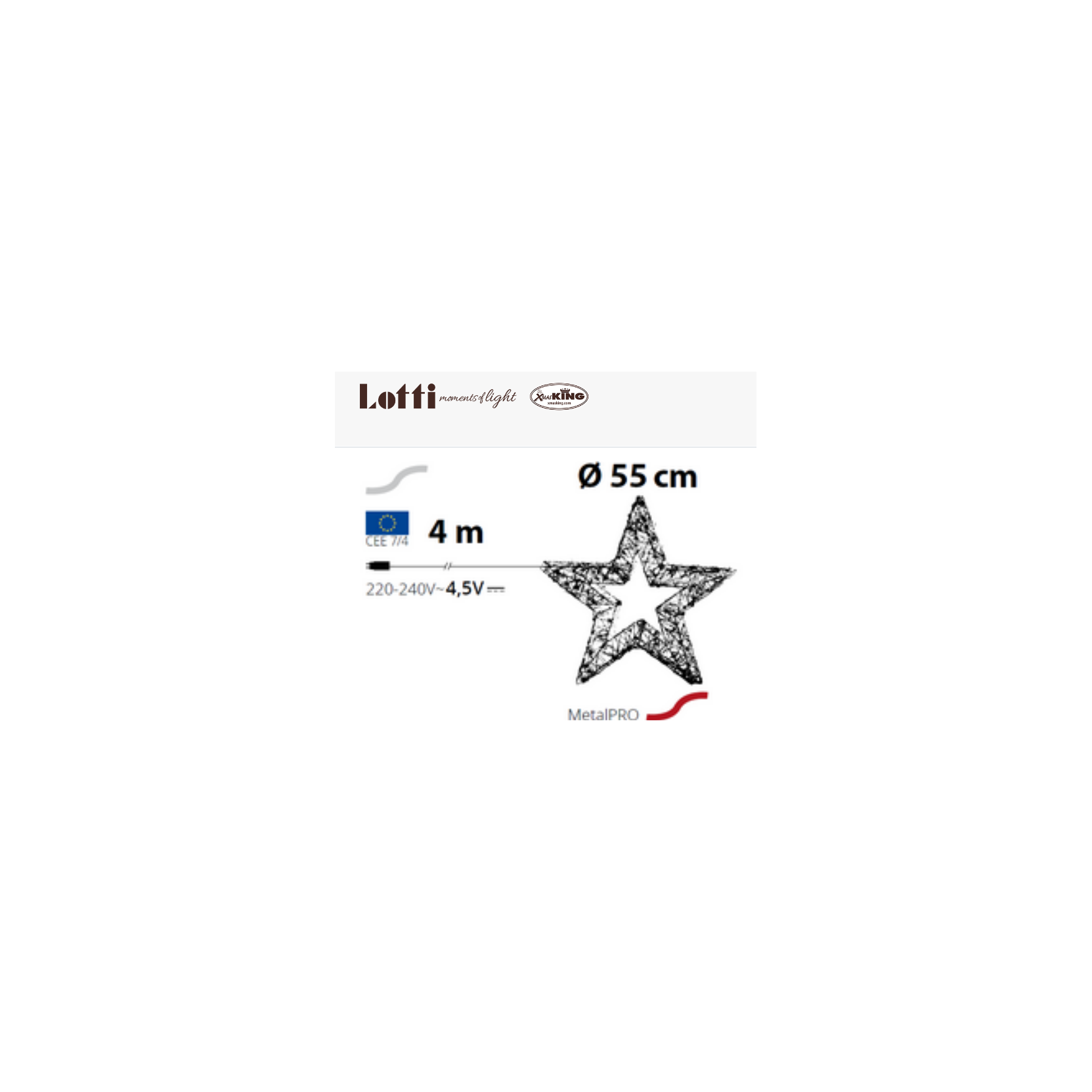 LOTTI IMPORTEXStella luminosa i metallo con effetto luce lento e rilassante, struttura in metallo bianco tridimensionale, luce microled pro bianco caldo, decorazione natalizia per interno ed esterno diametro 55cm, cavo lungo con alimentatore. PL 3D ST W 55 M180-H luce natalizia