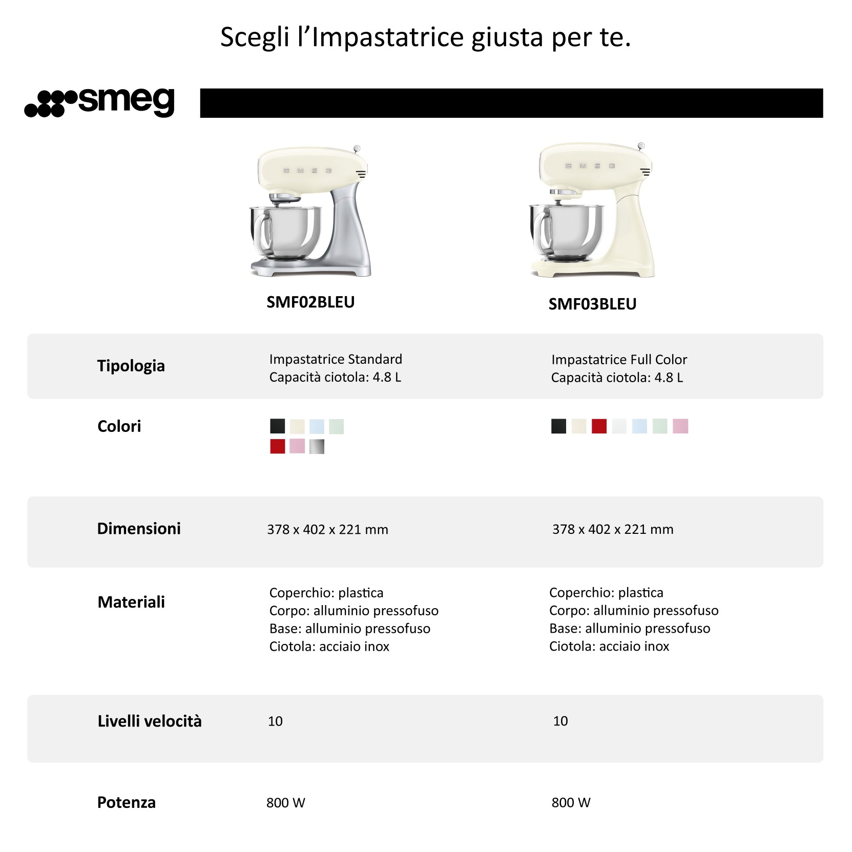 IMPASTATRICE PLANETARIA SMEG LINEA ANNI 50 COLORE BIANCO SMF13WHEU SMEG