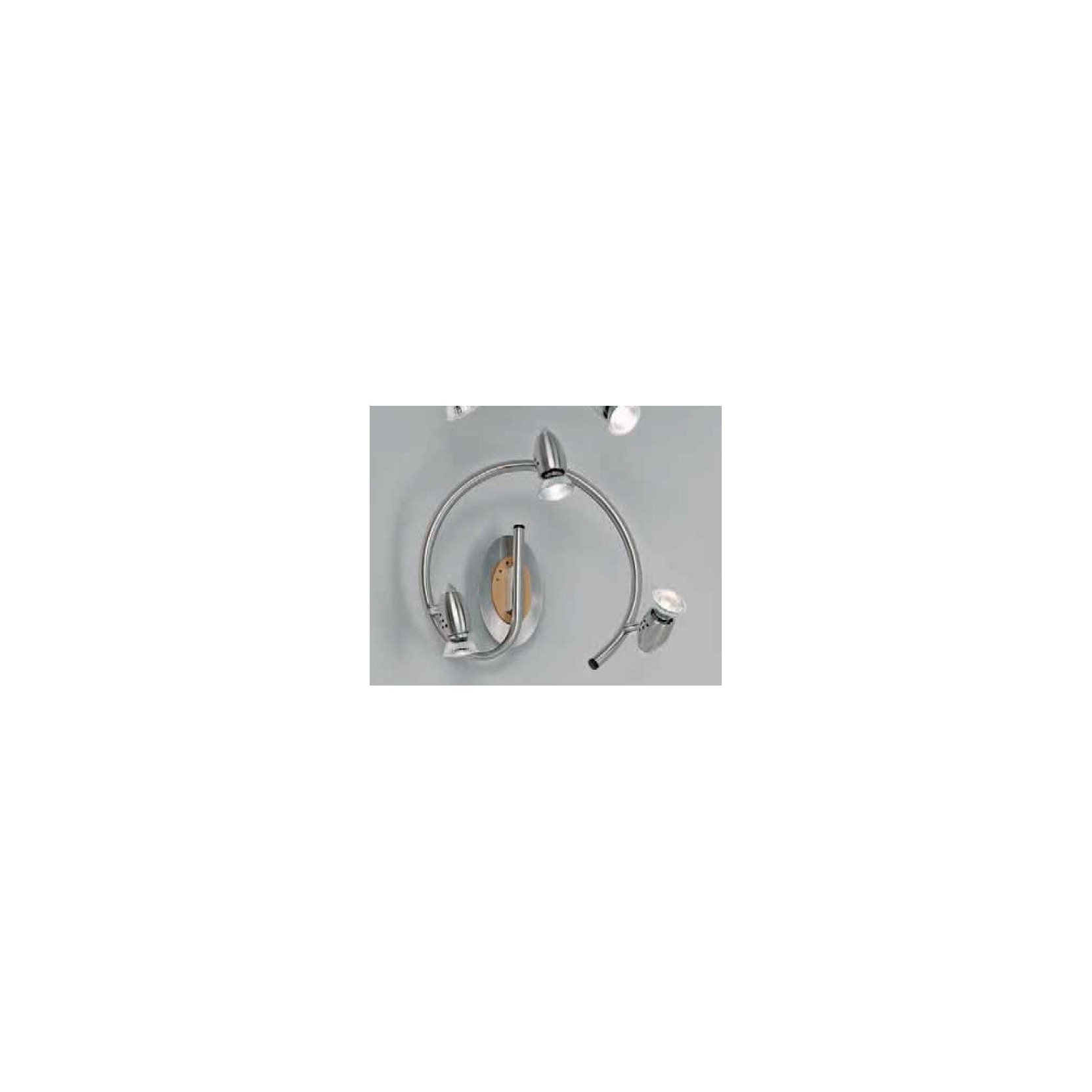 Plafoniera Perenz 4358 forma circolare con 3 faretti regolabili, montatura cromo spazzolato e particolare in legno. Adatta sia a parete che a soffitto, lampade dicroiche GU10 faretti Halogeni o a LED.