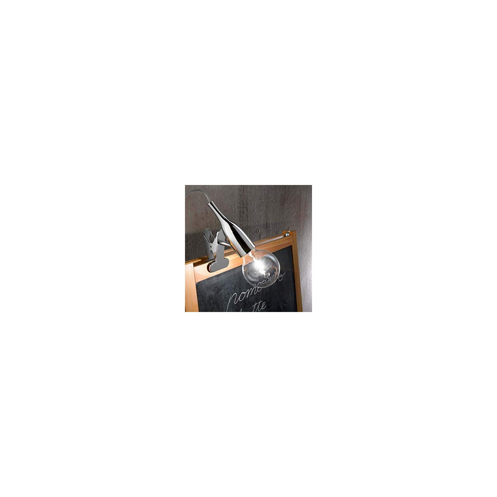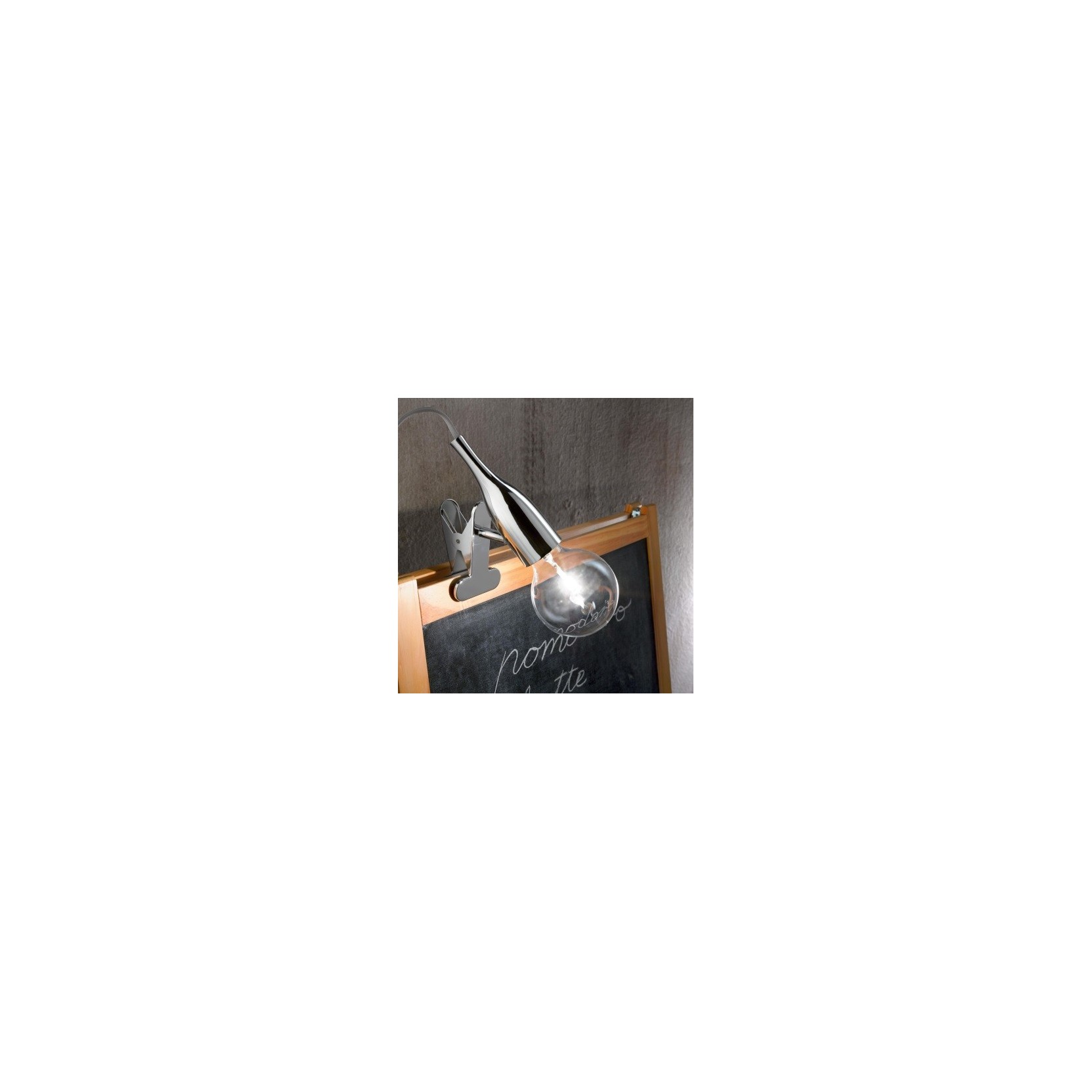 Faretto con pinza per attaccarlo a mensole e ripiani, comoda pinza a forte presa PICCHIO AP! colore cromo lucido con attacco E27 per utilizzare ogni tipo di lampadina led.