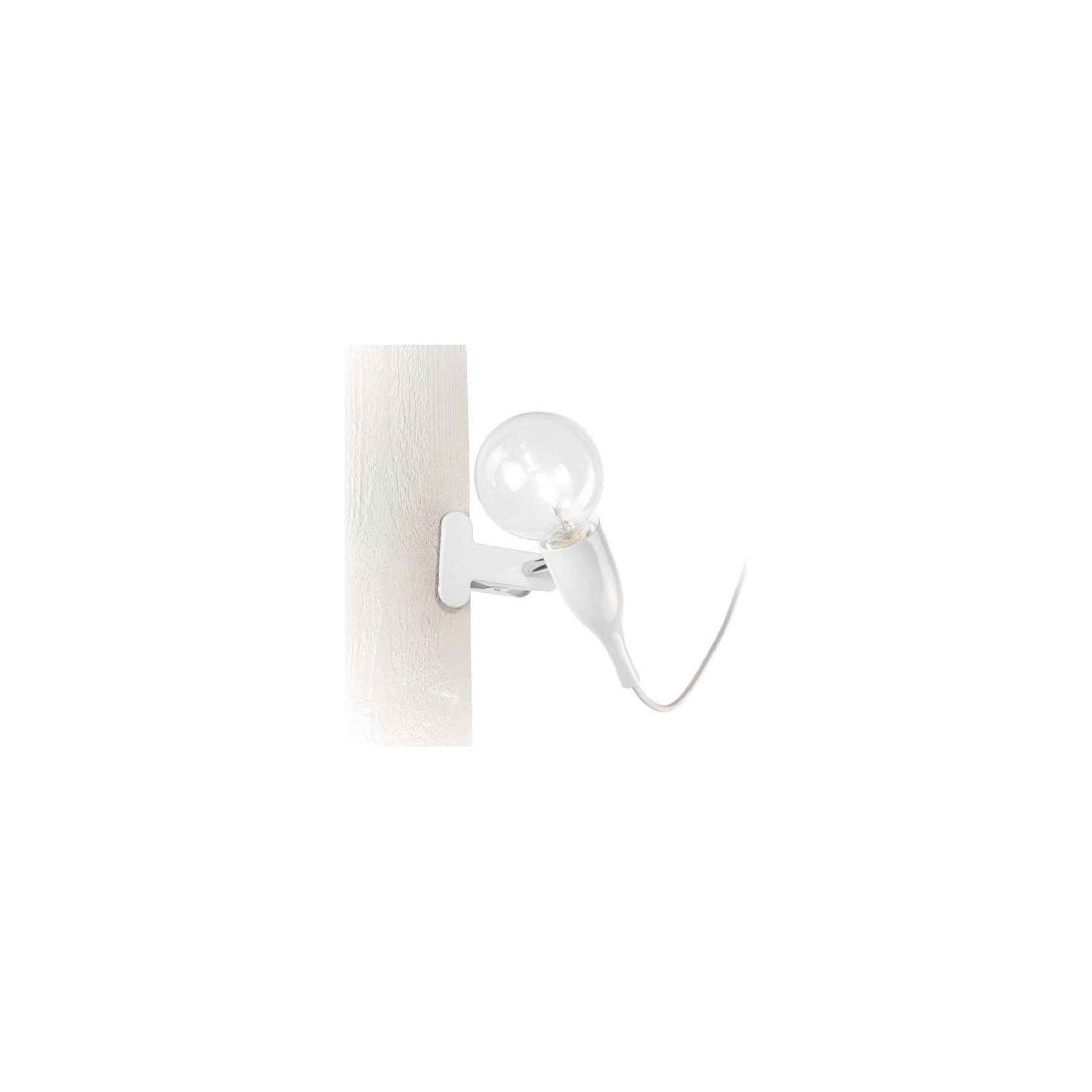 Spot pinza bianco attacco E27 con lampadina a vista. Picchio ap1 Ideal lux bianco è una lampada con pinza robusta per fissarla ad una mensola o a un tavolo, Portatile e luminosa la si posiziona ovunque. Colore bianco struttura in metallo cavo 1mt con interruttore lungo filo. Lampadina non inclusa. IP20 uso interno