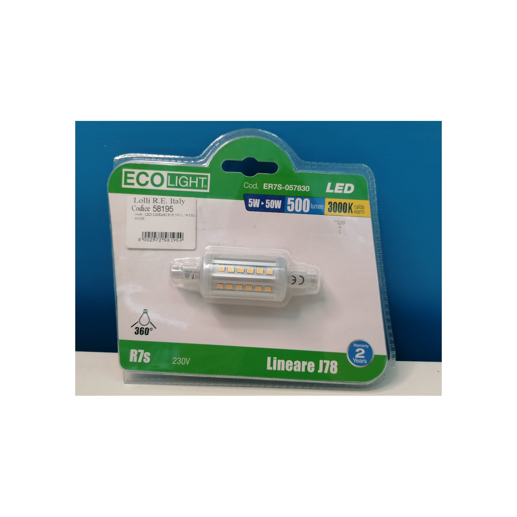LAMPADINA LED LINEARE CORTA R7S 5W L78 3000K ECOLIGHT
