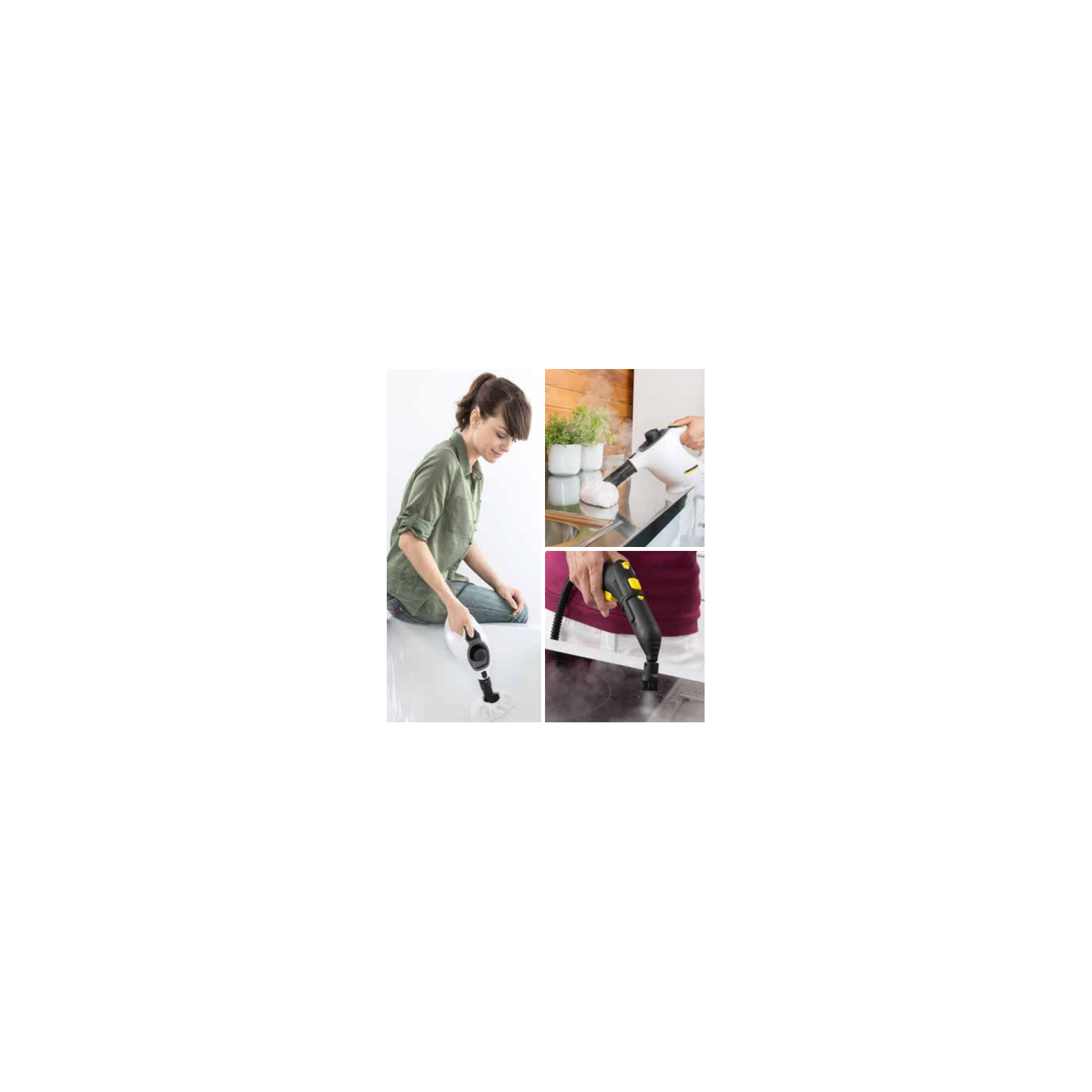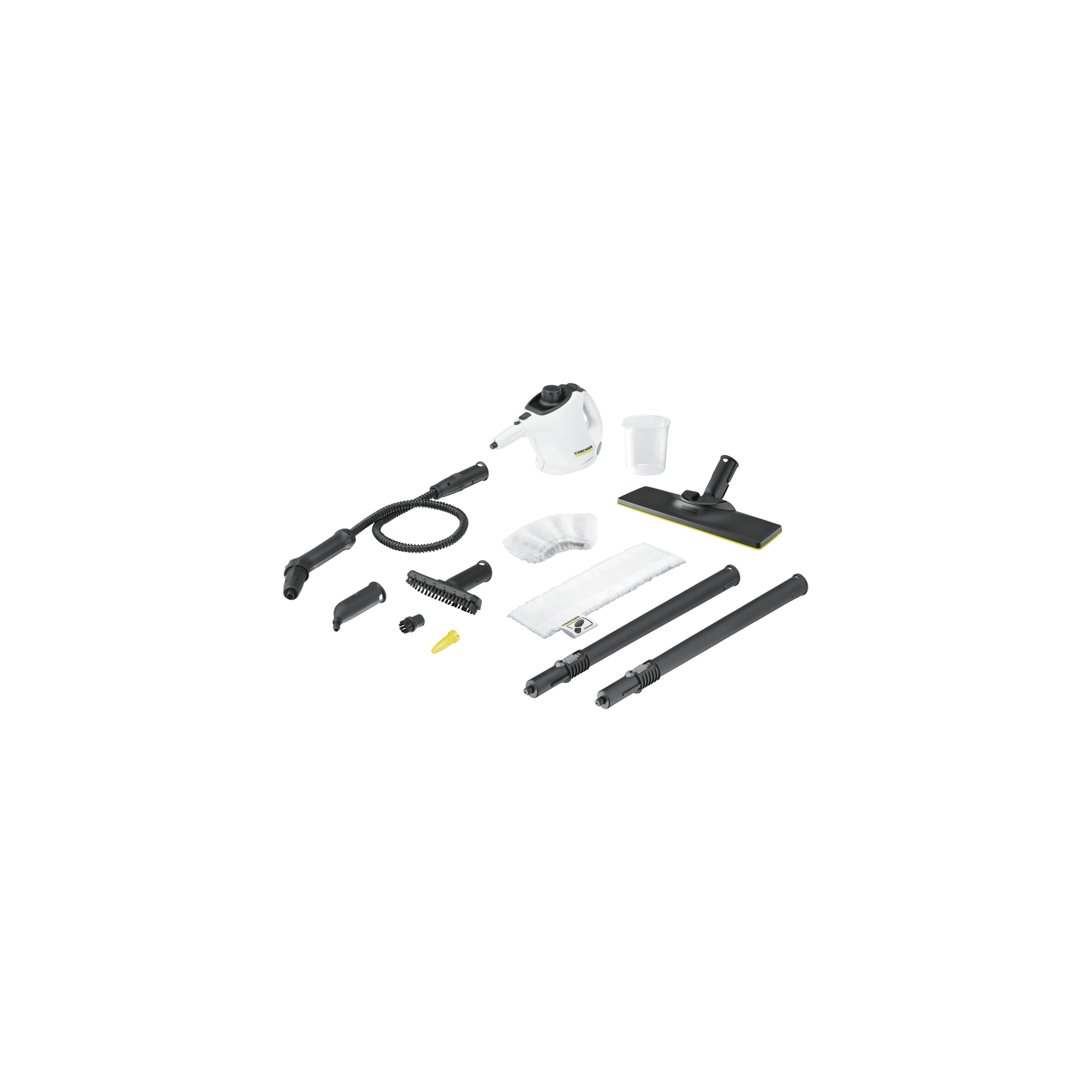 Piccolo vaporizzatore con accessori Karcher sc1 Premium si scalda in pochi minuti e genera vapore per pulire e igienizzare pavimenti, rivestimenti, tessuti, fughe, bagni ect-