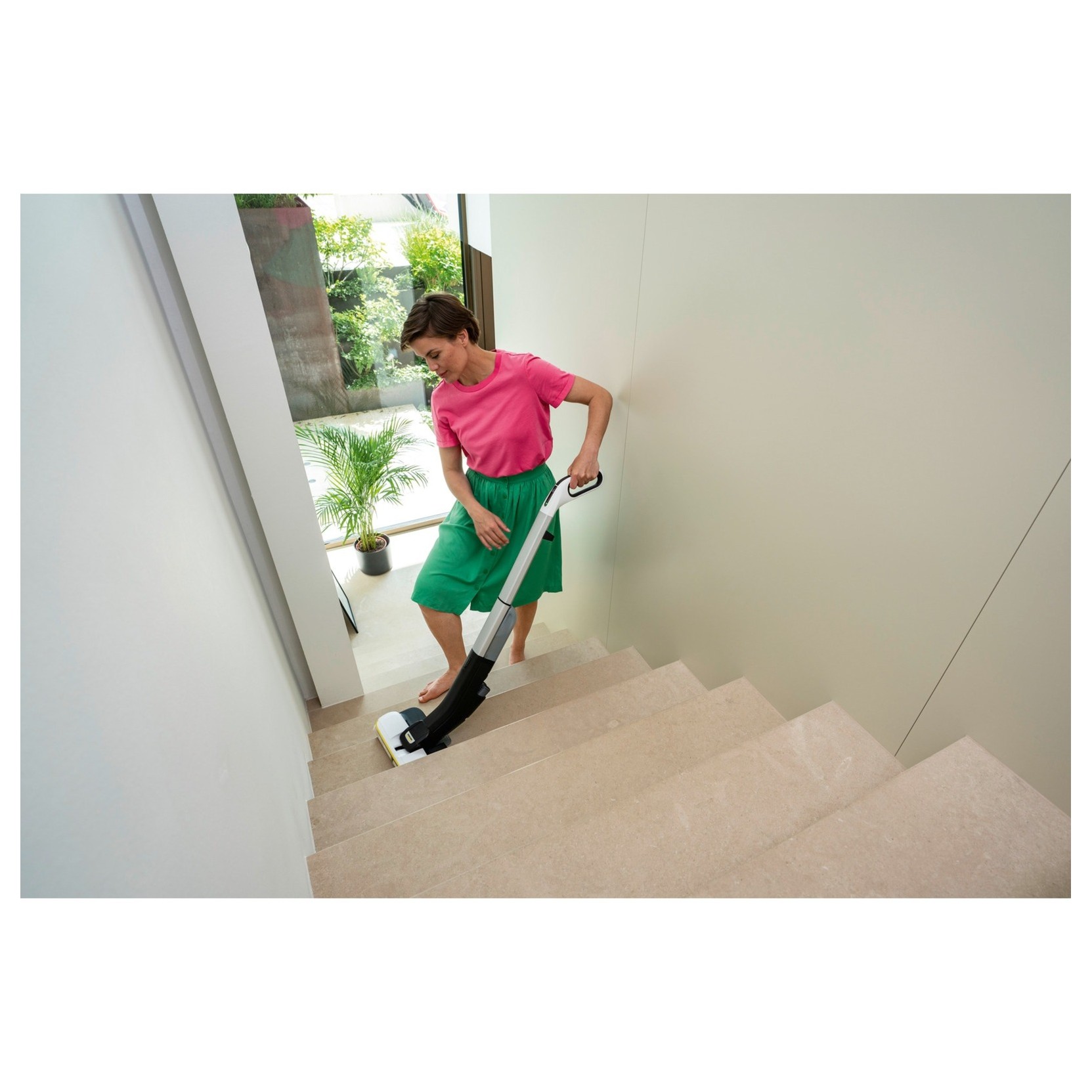 Con il lavapavimenti FC 44 non è più necessario passare l'aspirapolvere prima di pulire e si può rimuovere lo sporco quotidiano in un solo passaggio. Con la durata della batteria fino a 30 minuti, è possibile pulire senza sforzo aree fino a 90 MQ. Un segnale visivo viene utilizzato per comunicare quando è necessario riempire il serbatoio dell'acqua pulita e svuotare il serbatoio dell'acqua sporca.