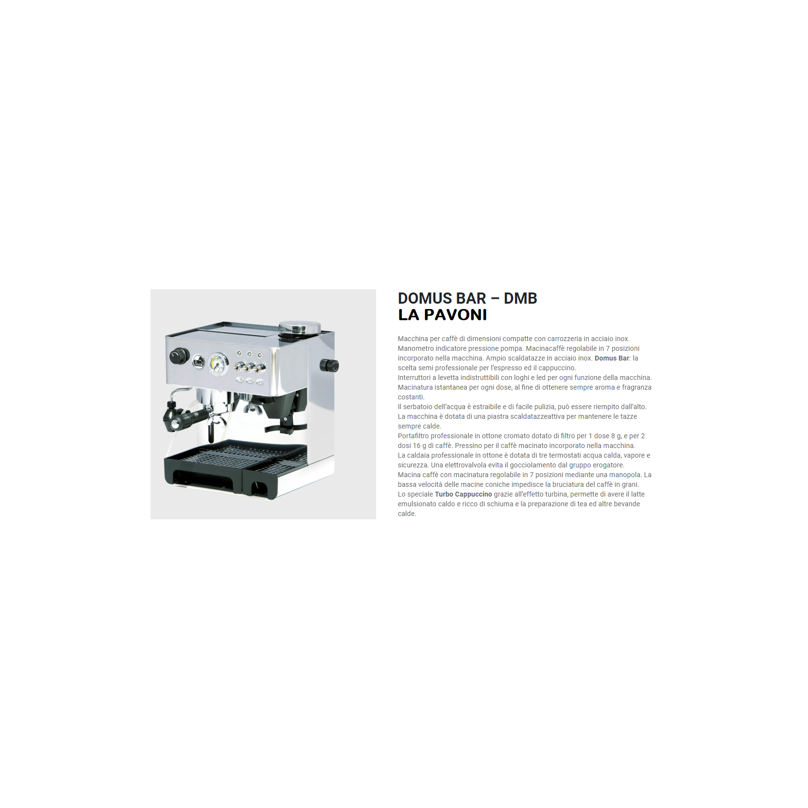 Il vero caffè espresso Italiano, da sempre è firmato La Pavoni, Domus Bar DMB è la scelta semi professionale per chi cerca un caffè eccellente come al bar.