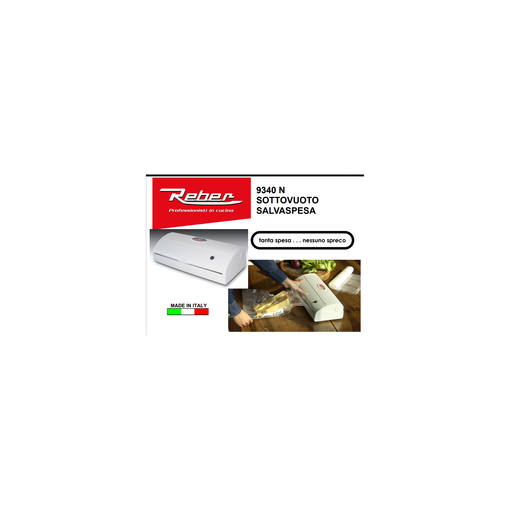 acchina per fare il sottovuoto negli alimenti REBER SALVASPESA è la sottovuoto ideale per conservare in modo facile e veloce gli alimenti, funzionamento automatico. Barra saldante da 32 cm.