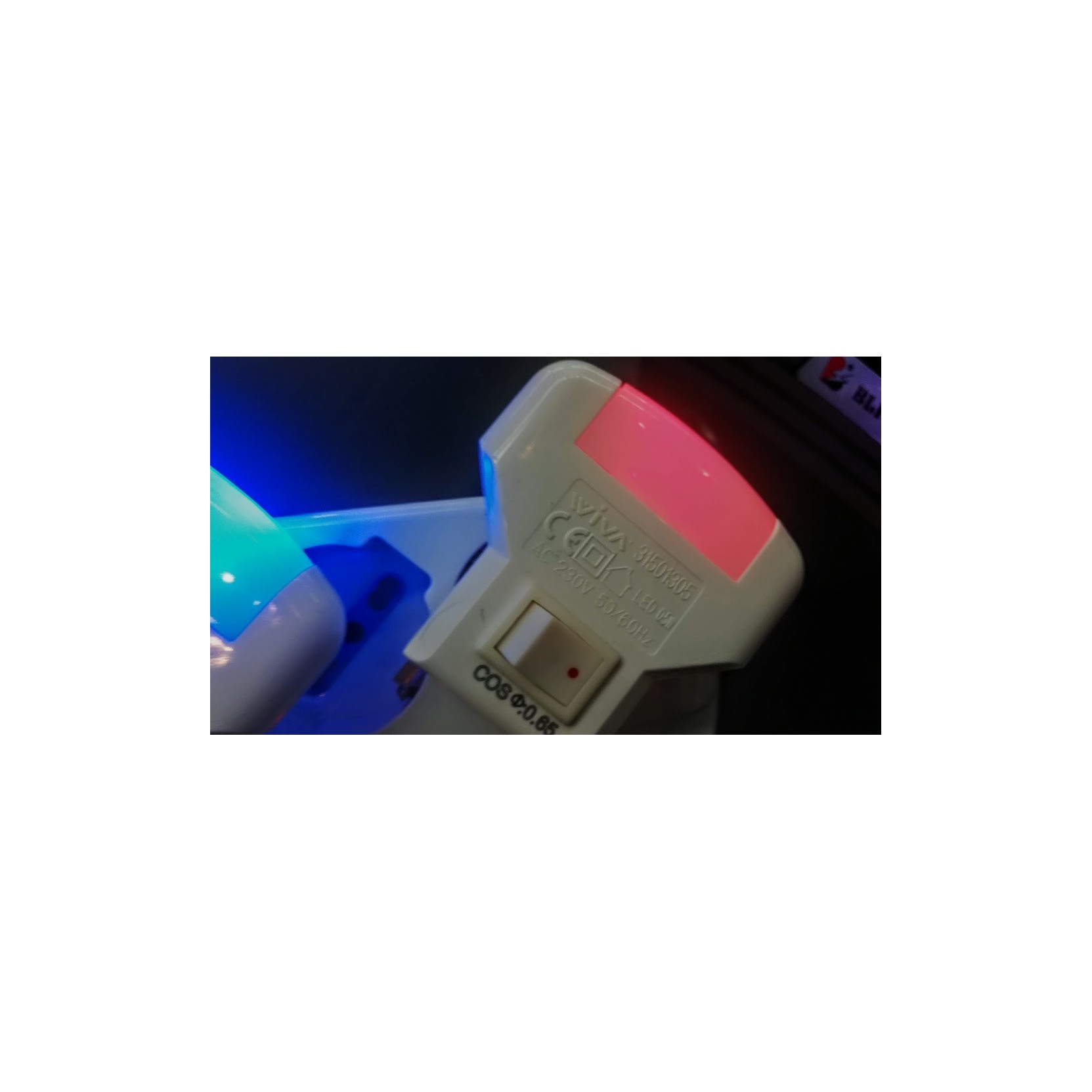 PUNTO LUCE NOTTURNO LED CON INTERRUTTORE BLU, GIALLO, ROSSO, VERDE, BIANCO