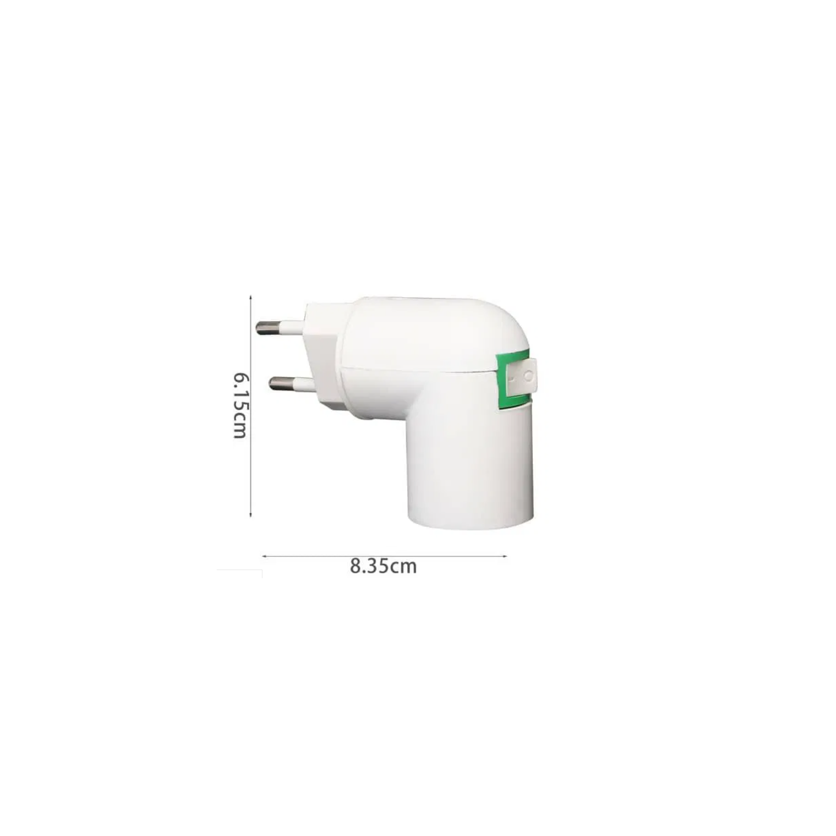 Portalampada a spina con interruttore. Per illuminare ogni zona della casa in modo veloce. L'adattatore ha spina 10A e portalampada con attacco E14 e interruttore. Spina girevola per posizionarlo meglio. Si utilizza con ogni tipo di lampadina E14