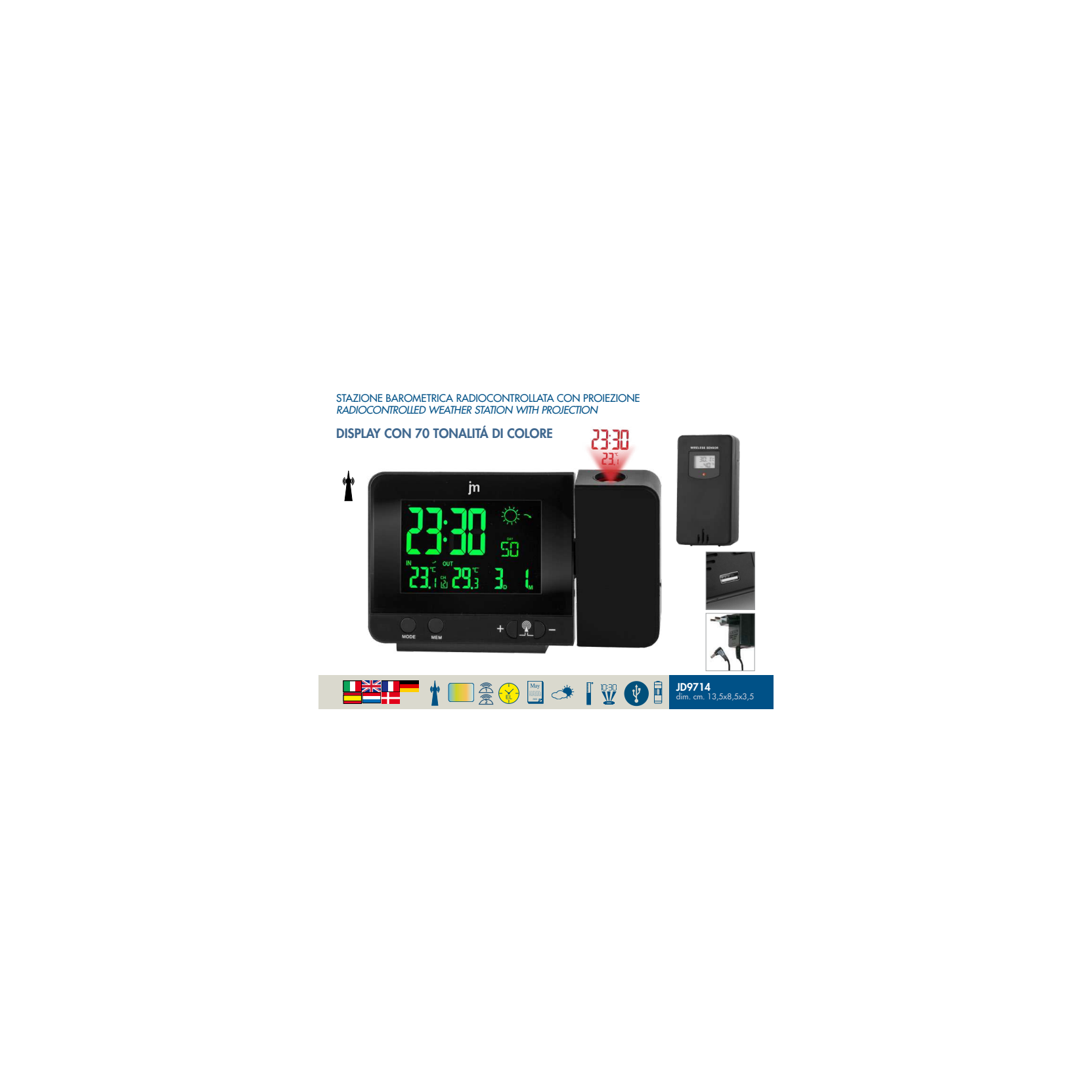 JD9714 OROLOGIO SVEGLIA CON STAZIONE METEO, PROIEZIONE ORARIO E TEMPERATURA, DISPLAY CON SCELTA DEI COLORI FINO A 80 TONALITA'