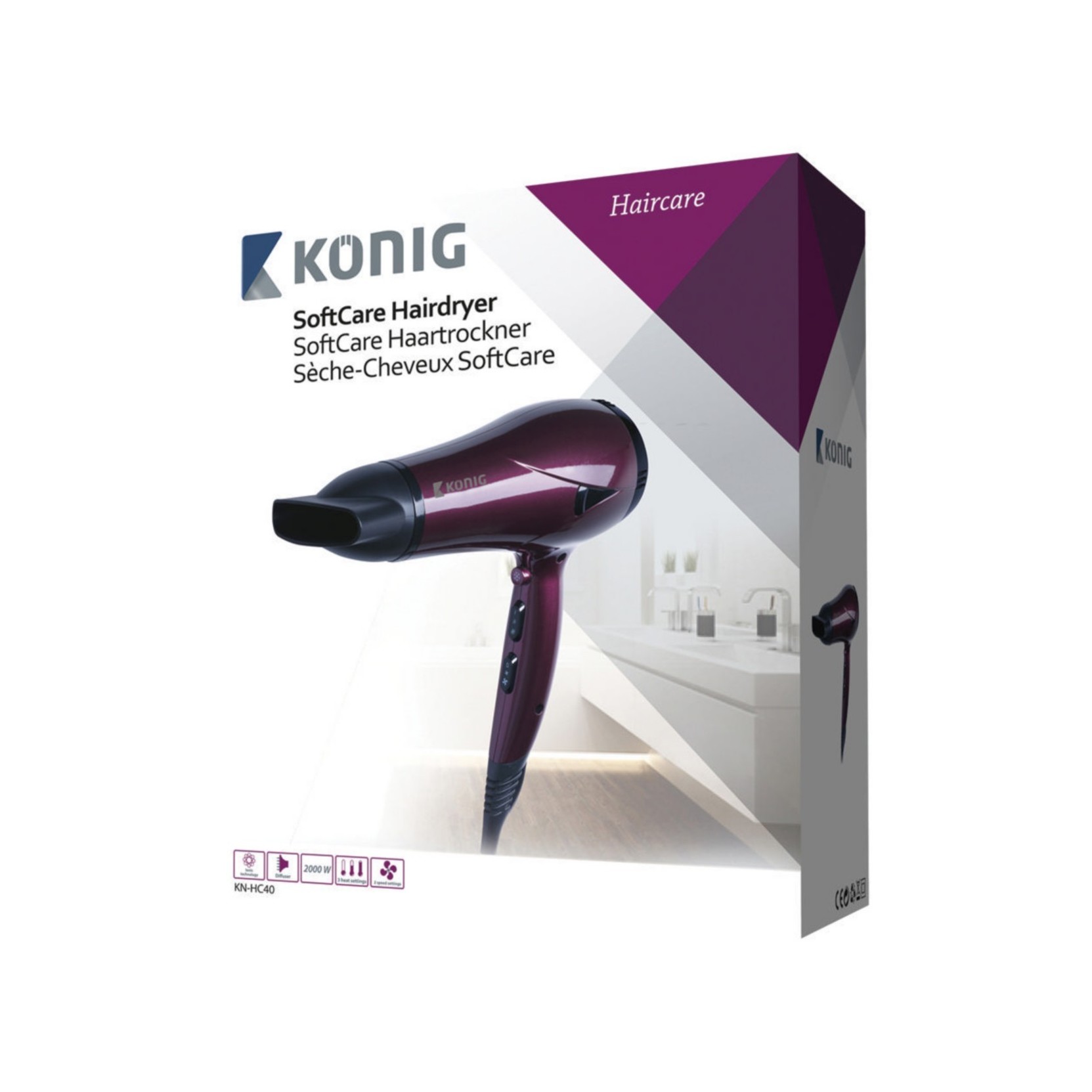 SoftCare hairdryer designed with Ionic Technology that eliminates static hair, conditions the hair and smooths down the hair cuticles to intensify the hairs shine and glossiness. The result is smooth and frizz-free hair that shines beautifully.