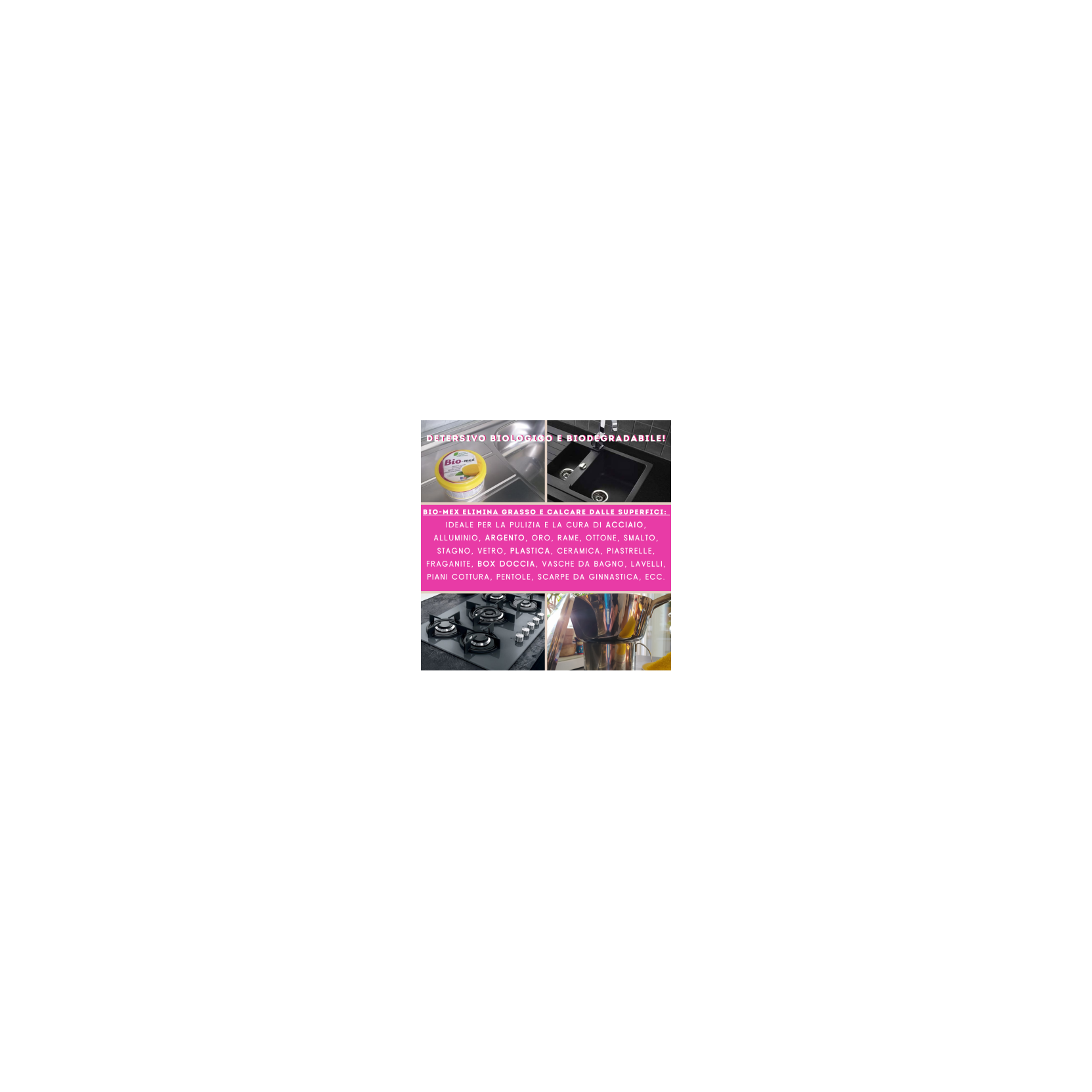 - Versatile: Bio-mex è ideale per la pulizia di una vasta gamma di superfici, tra cui acciaio, alluminio, argento, oro, rame, ottone, smalto, stagno, vetro, plastica liscia, ceramica.