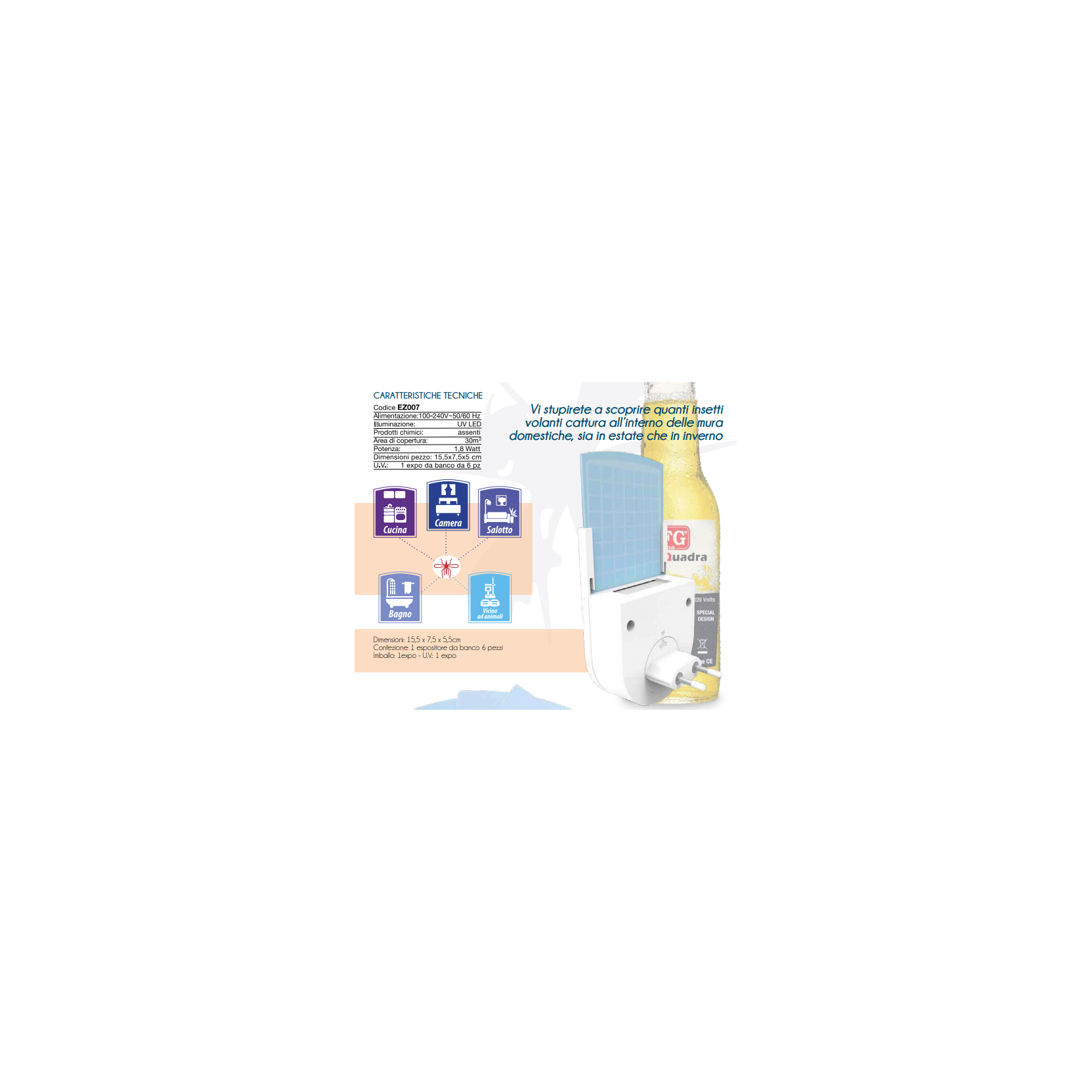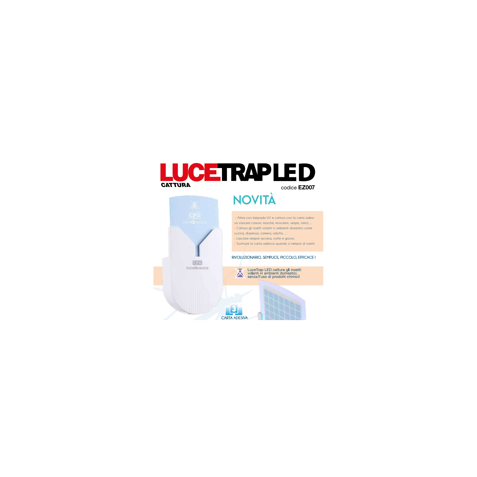 LUCETRAP LED PUNTO LUCE CATTURA ZANZARE DA PRESA PICCOLO CON ADESIVO