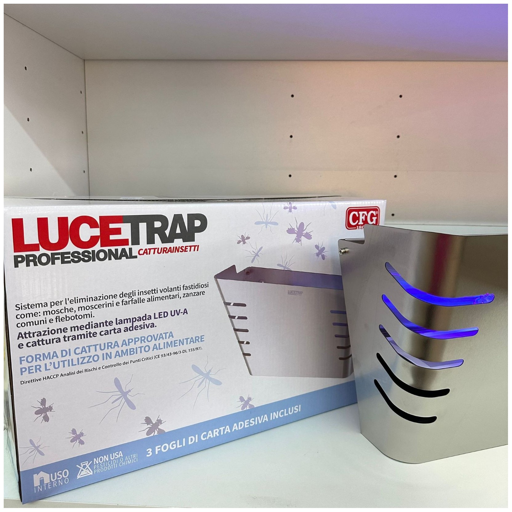 LUCETRAP PROFESSIONAL è il sistema per l'eliminazione degli insetti volanti fastidiosi come: mosche, moscerini e farfalle alimentari, zanzare comuni e flebotomi.