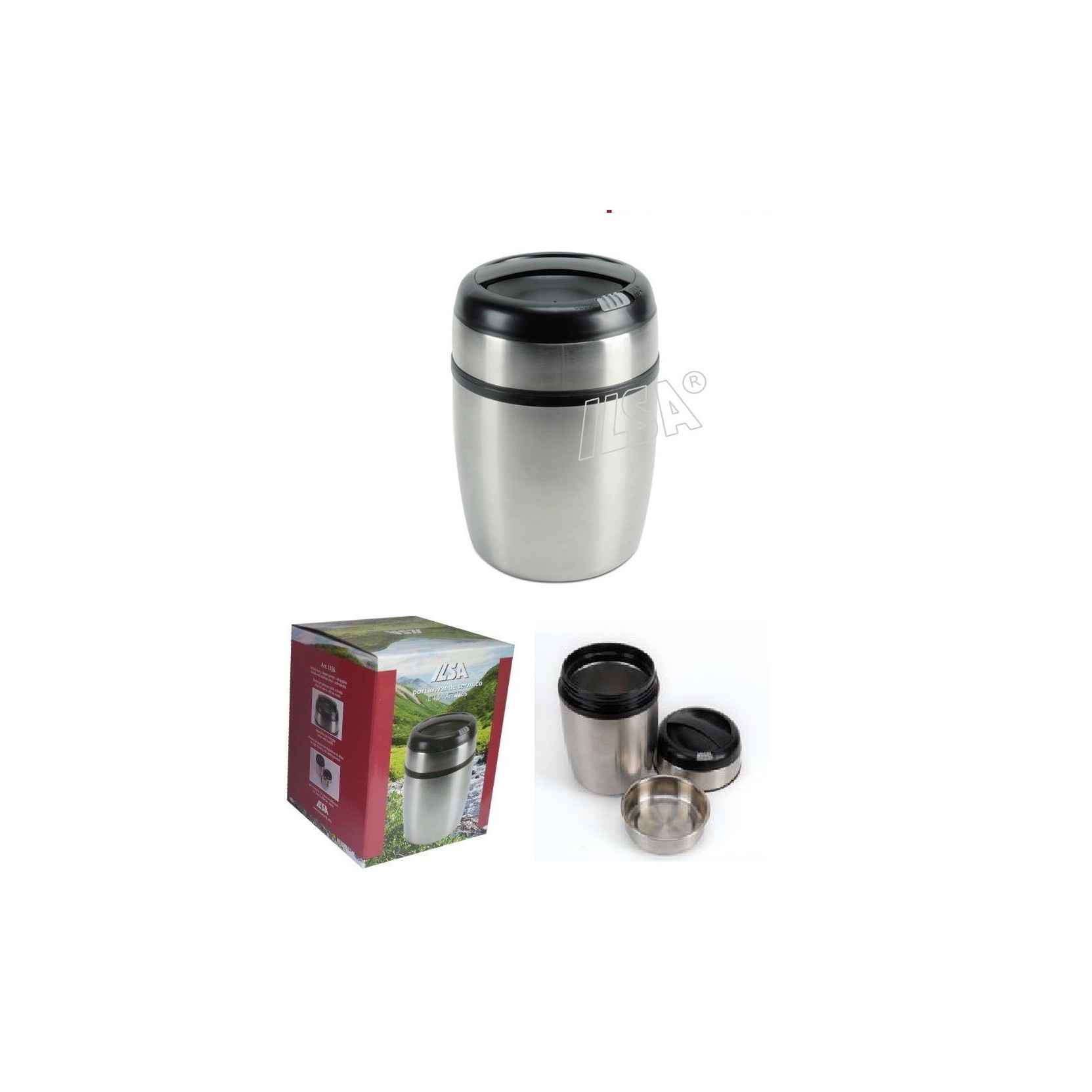 Mantenere in caldo il pasto al lavoro con il Thermos per alimenti in acciaio ILSA, per mantenere calda la pasta al lavoro. Il Thermos Porta vivande Ilsa è tutto in acciaio inox e manico in ABS, infrangibile e robusto. Chiusura ermetica con pulsante di sfiato. Ha 2 scomparti all'interno. Ideale per portarsi da casa un pasto caldo al lavoro. Lavabile in lavastoviglie i contenitori.Capacità 1,5lt.