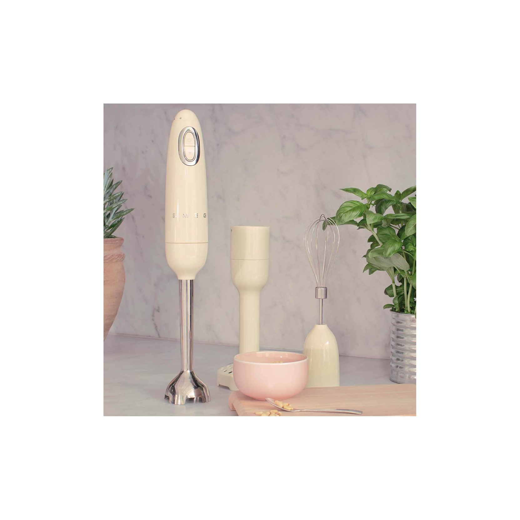 FRULLATORE IMMERSIONE SMEG COLORE PANNA, singolo senza accessori braccio in acciaio, impugnatura ergonomica antiscivolo, velocità regolabile e funzione turbo.