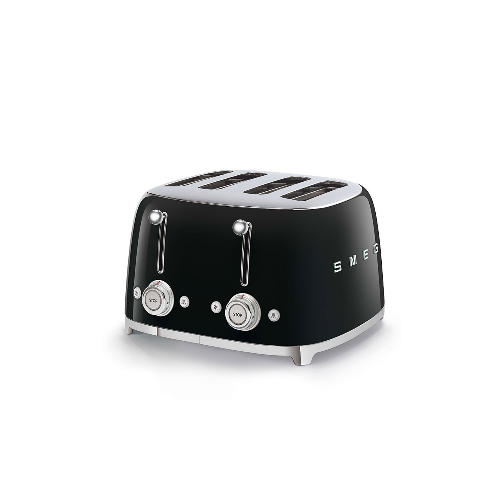 Tostapane Smeg Nero lucido 4 fette separate, linea anni 50 colore Nero finiture cromo.