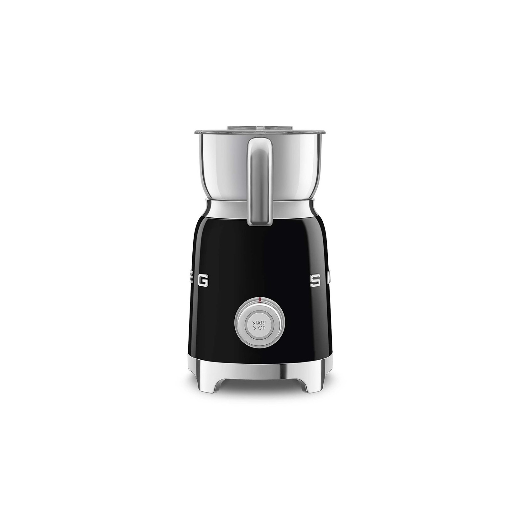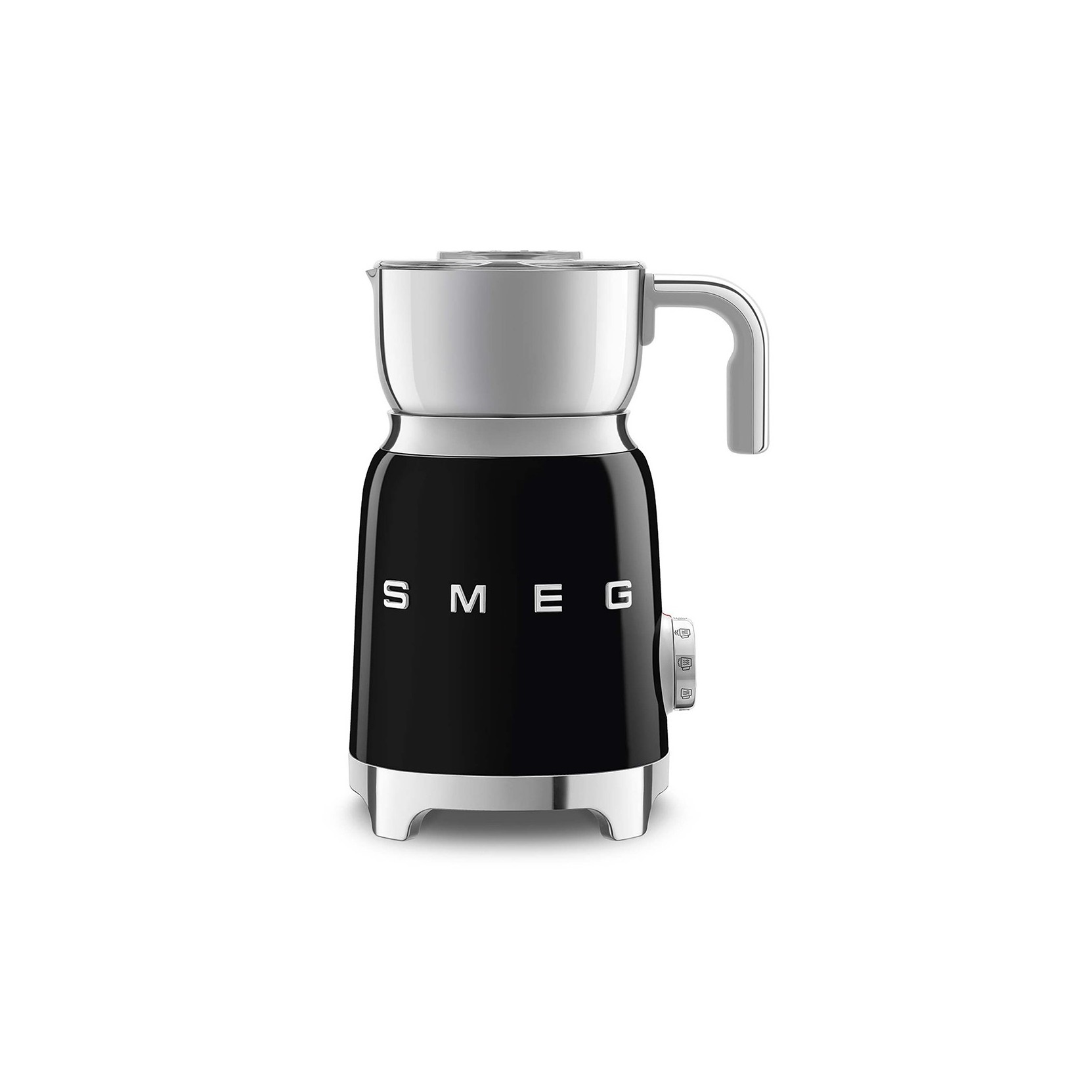 Il cappucinatore Smeg linea anni 50 colore Nero per fare cappuccini, latte schiumato,caffè shakerato e cioccolata. MFF01 ha 6 programmi automatici e una funzione manuale preparare bevande calde e fredde con o senza schiuma.
