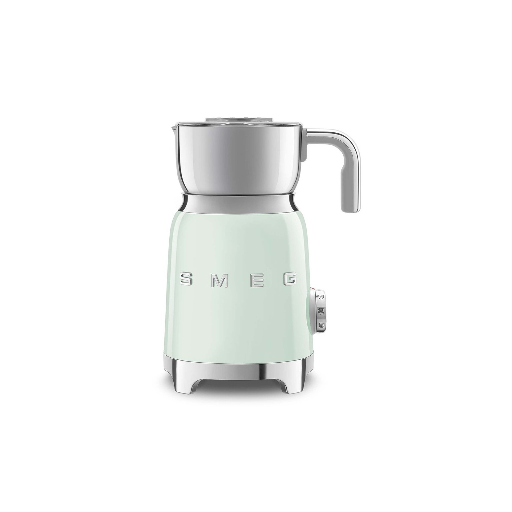 Il cappucinatore Smeg linea anni 50 colore Verde Pastello per fare cappuccini, latte schiumato,caffè shakerato e cioccolata. MFF01 ha 6 programmi automatici e una funzione manuale preparare bevande calde e fredde con o senza schiuma.