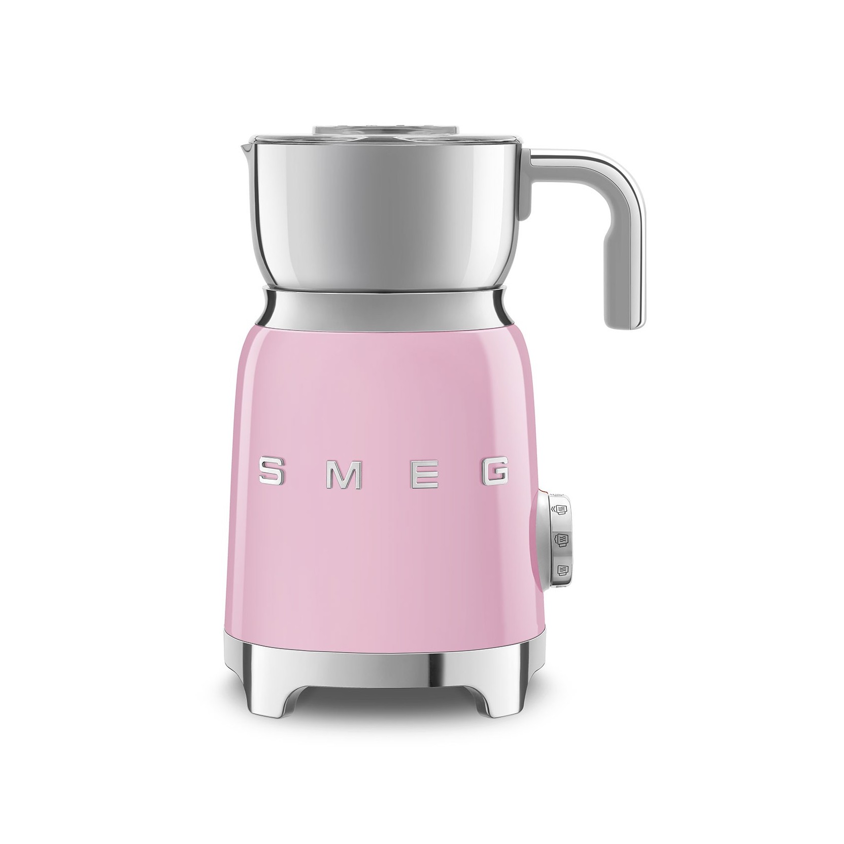Il cappucinatore Smeg linea anni 50 colore Rosa per fare cappuccini, latte schiumato,caffè shakerato e cioccolata. MFF01 ha 6 programmi automatici e una funzione manuale preparare bevande calde e fredde con o senza schiuma.