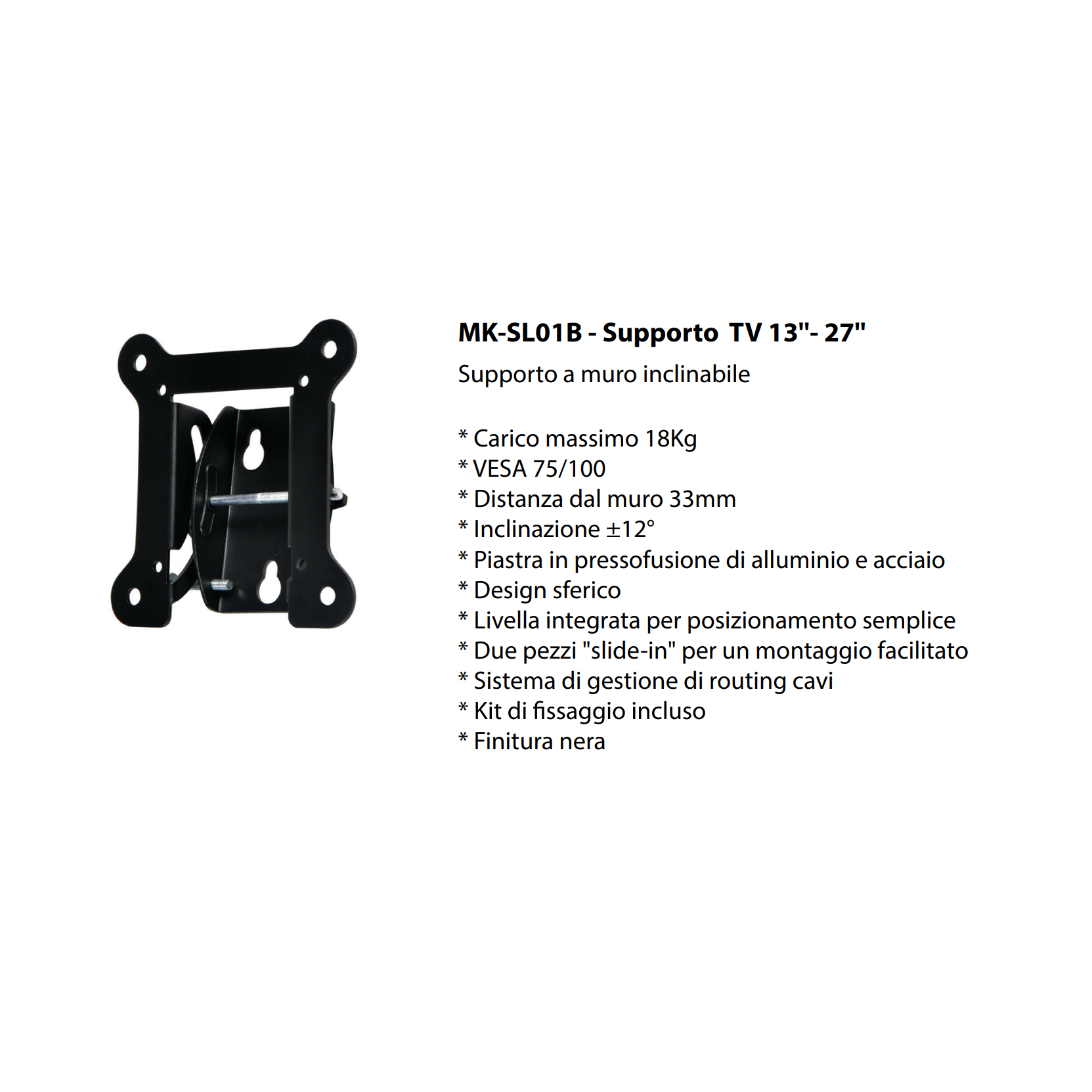 Supporto murale TV 13"-27" inclinabile MKC MK-SL01E