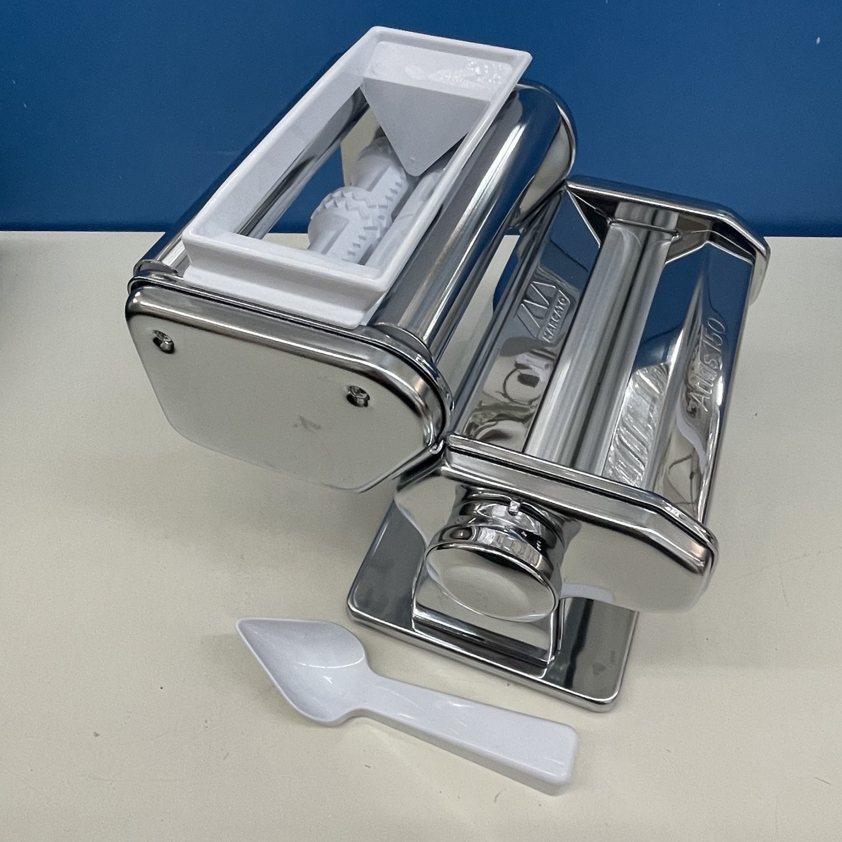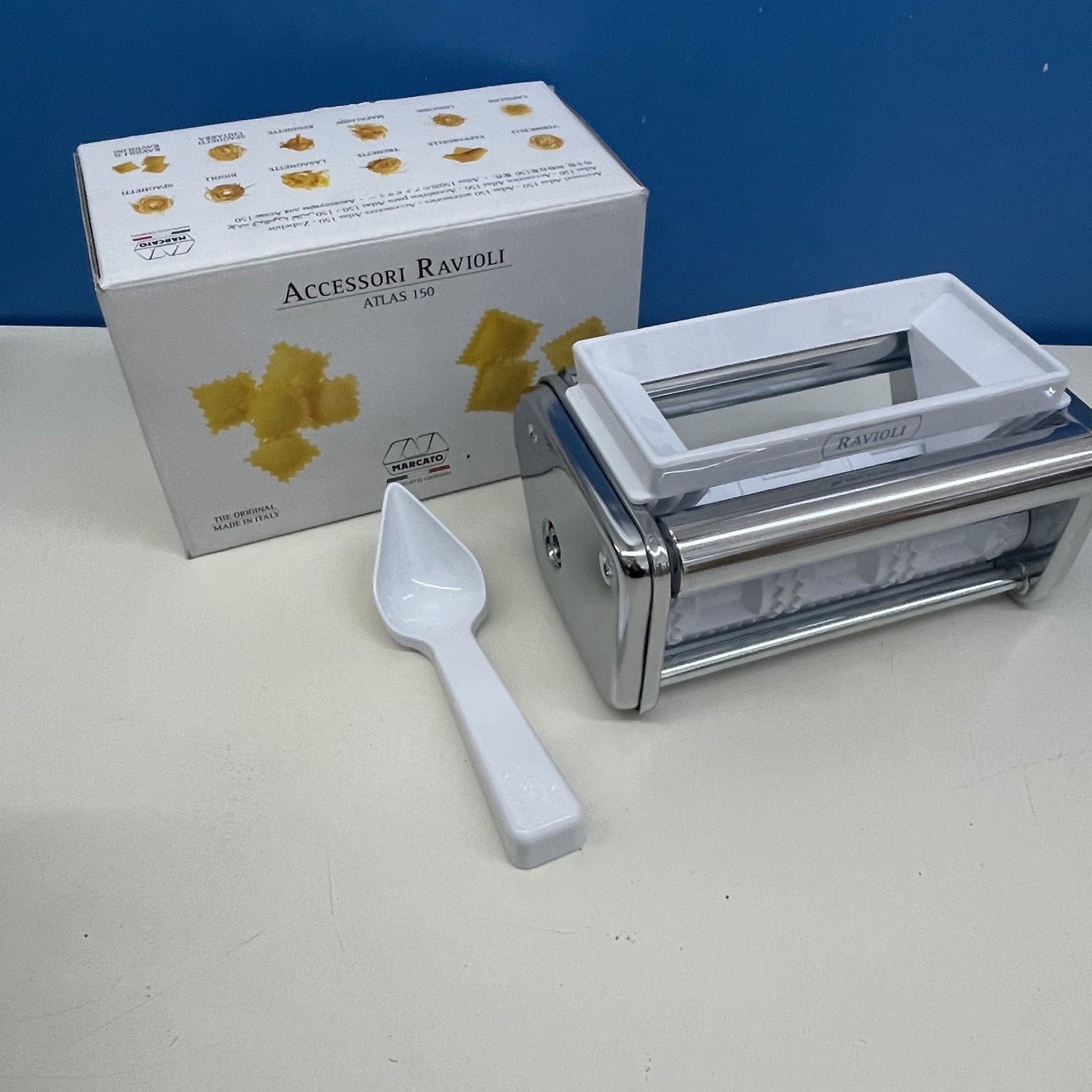 Per utilizzare l'accessorio, basta semplicemente applicarlo con le guide apposite, sostituendo accessorio triplex in dotazione (tagliatelle e tagliolini) alla vostra macchina MARCATO ATLAS 150