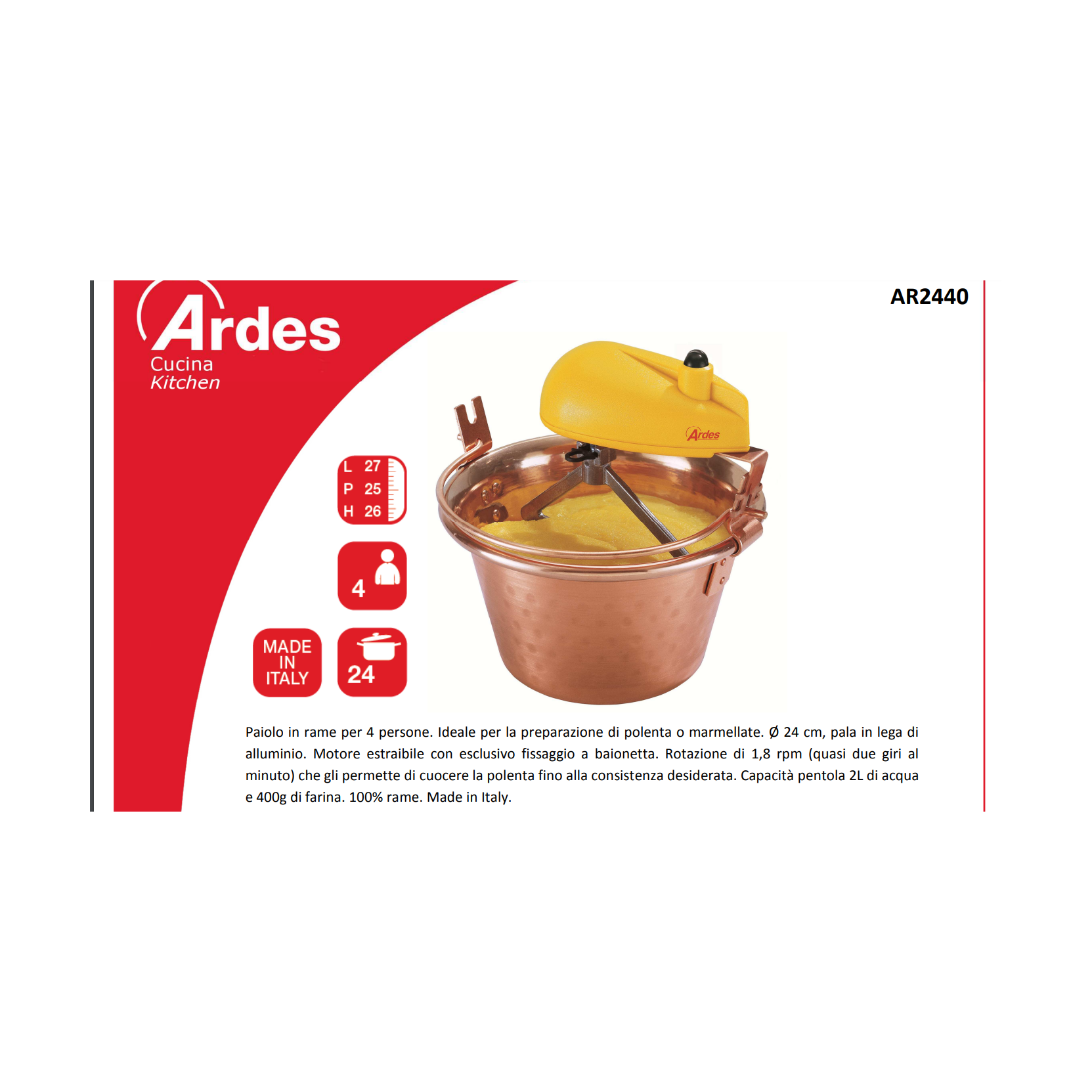 Paiolo in rame per polenta 2/4 persone, motore estraibile ARDES AR2440