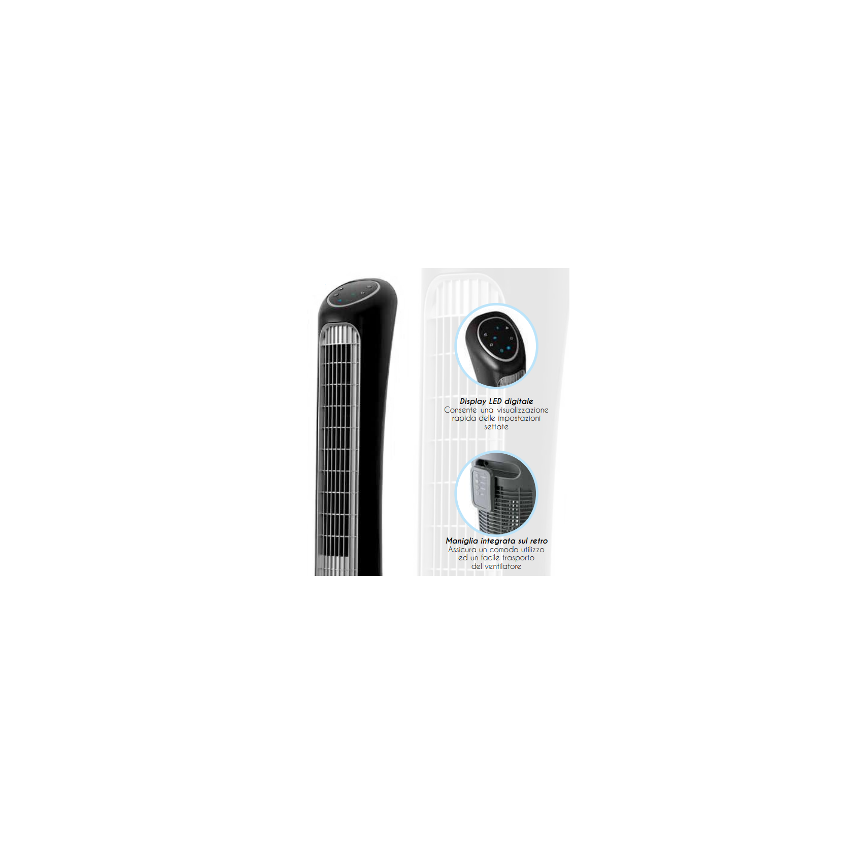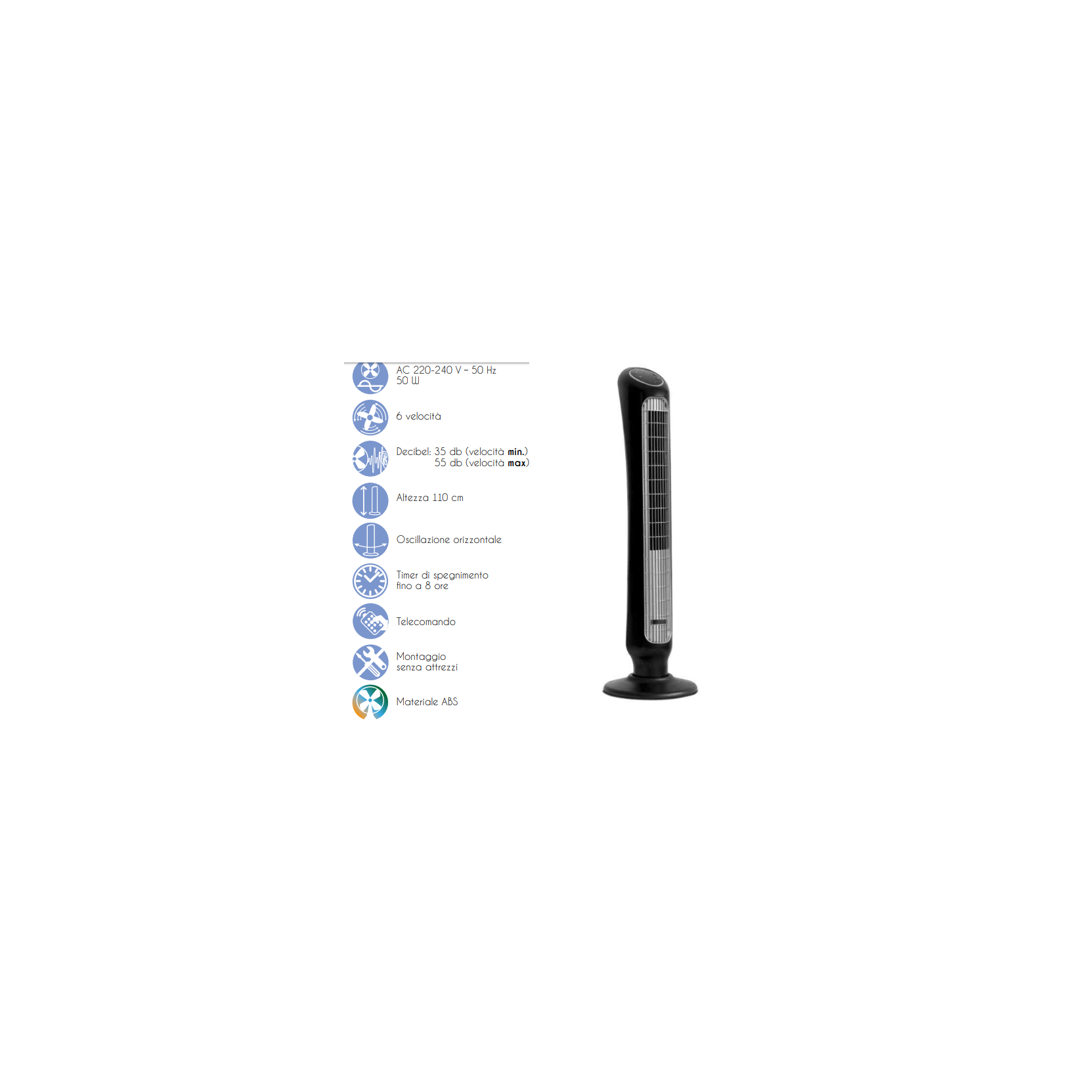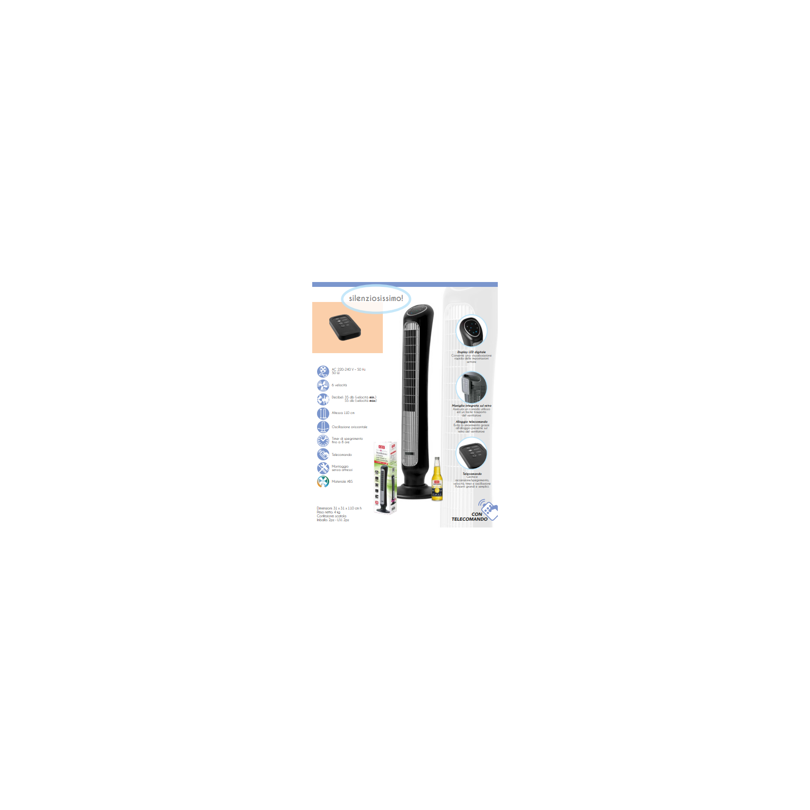 Ventilatore Torrelux di Cfg è un ventilatore a torretta molto silenzioso con telecomando, 6 velocità oscillazione, e timer per spegnersi da solo. Elegante, alto e poco ingombrante Torrelux è ideale quando non deve farsi notare ma rinfrescare. Ventilatore a torre che occupa pochissimo spazio! Dotato di 6 velocità, azionabili anche con telecomando presente nella confezione. SILENZIOSISSIMO