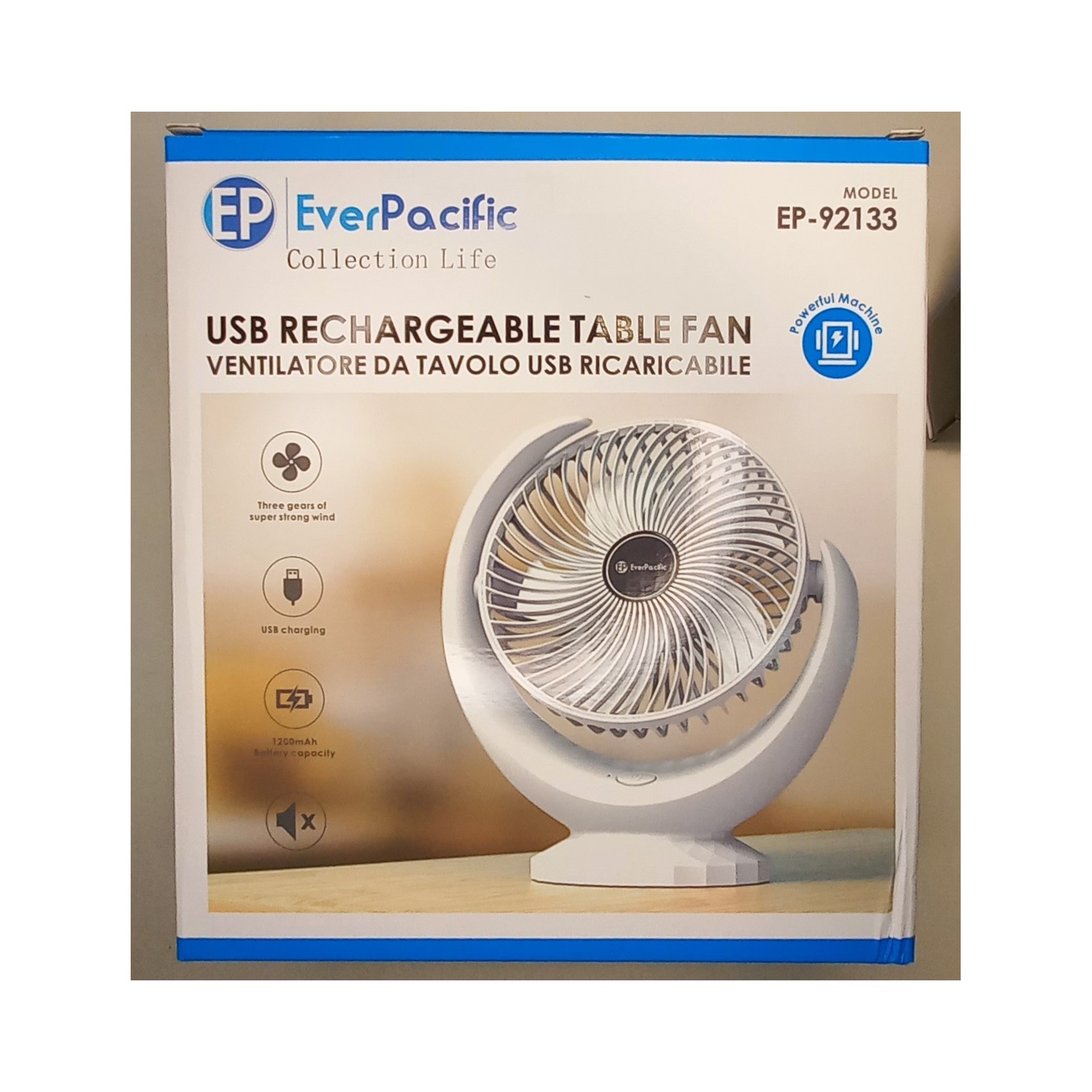 Ventilatore senza filo piccolo portatile da appoggio orientabile ideale per scrivania. Si ricarica tremite USB tempo di utilizzo 60-90 minuti circa, tempo di ricarica 3 ore. 3 velocità regolabili, molto silenzioso.